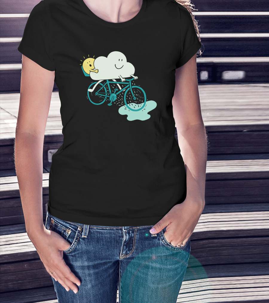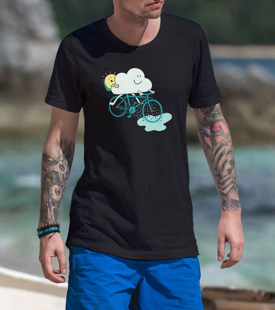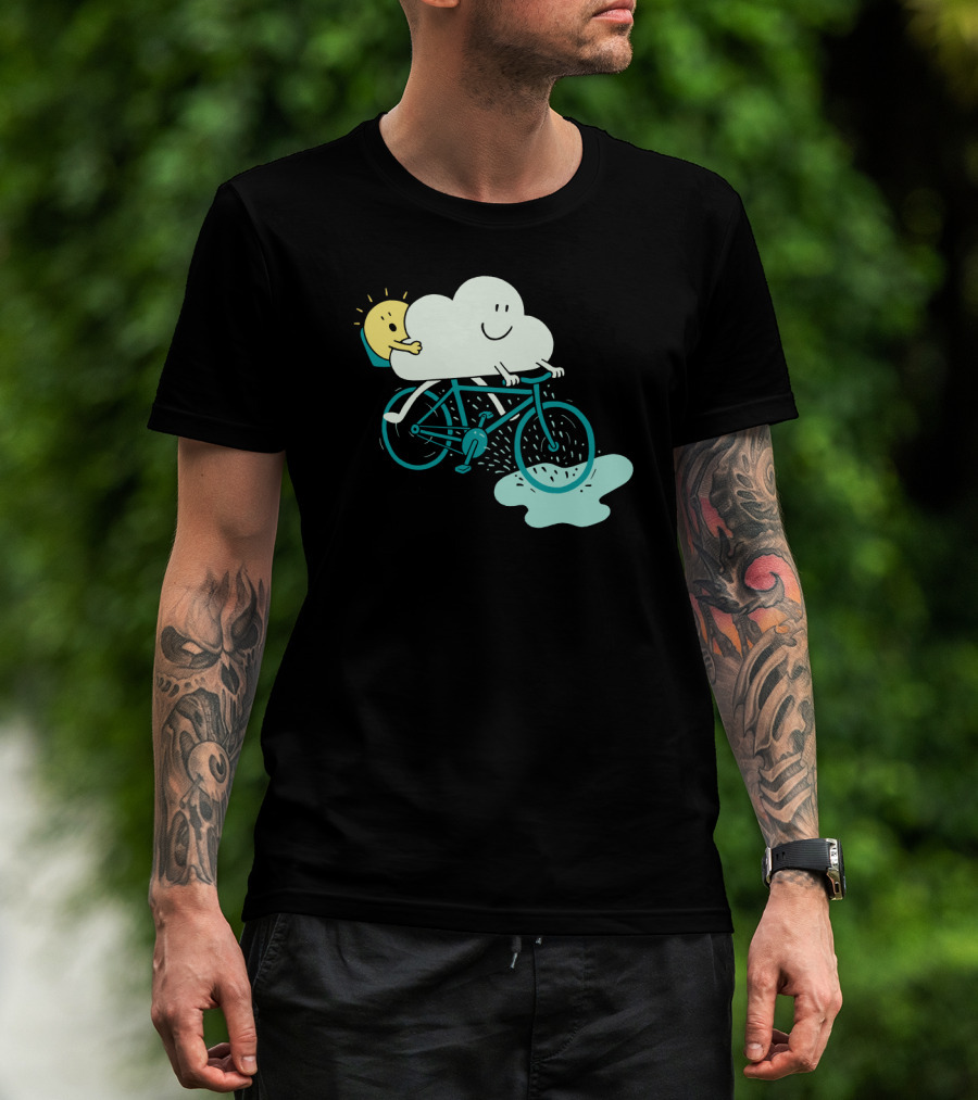 Weather Cycles Happy Sun And Cloud Riding Bicycle T-Shirt