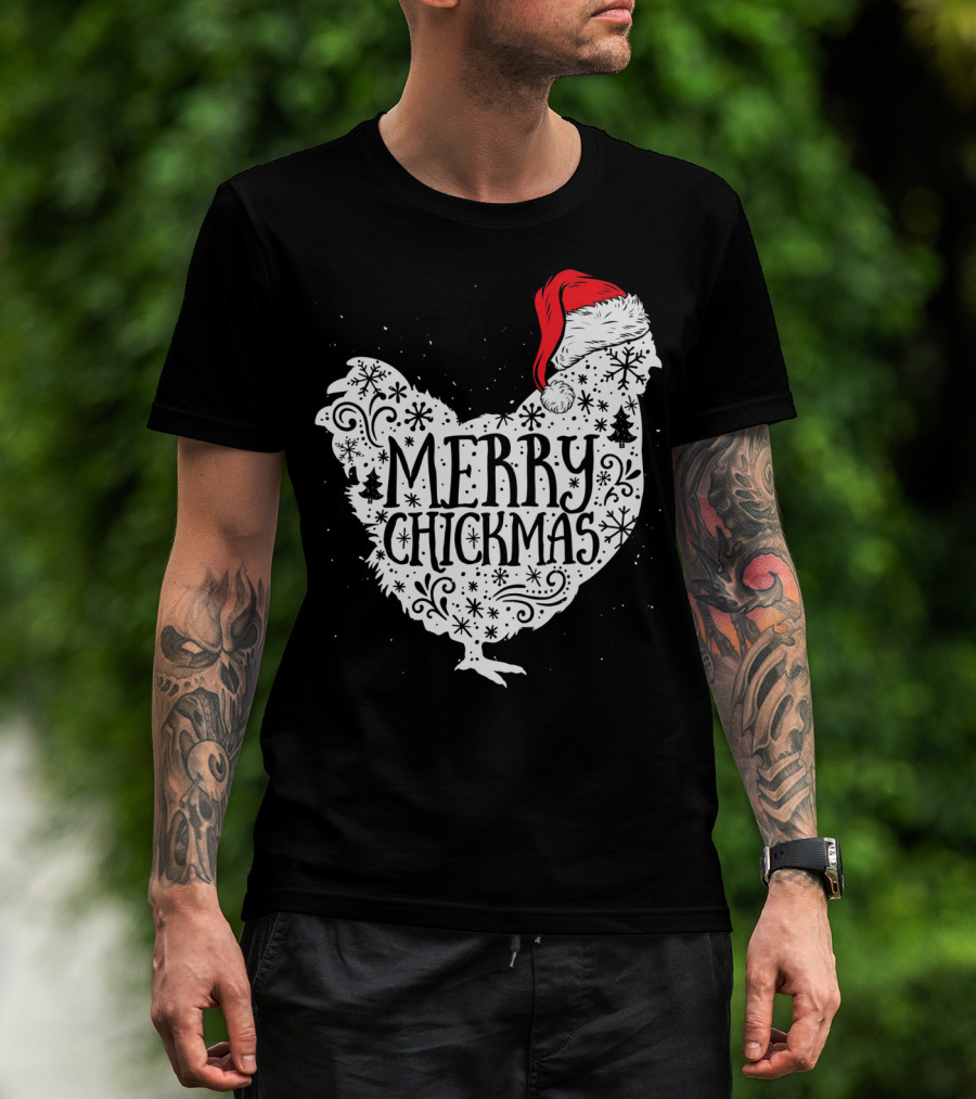 Merry Chickmas Chicken With Santa Claus Hat T-Shirt