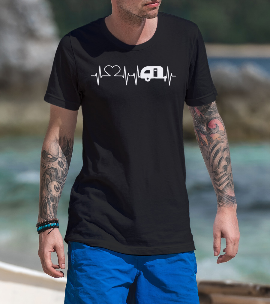 Heartbeat Camper Heartbeat Campfire Camping Lovers T-Shirt