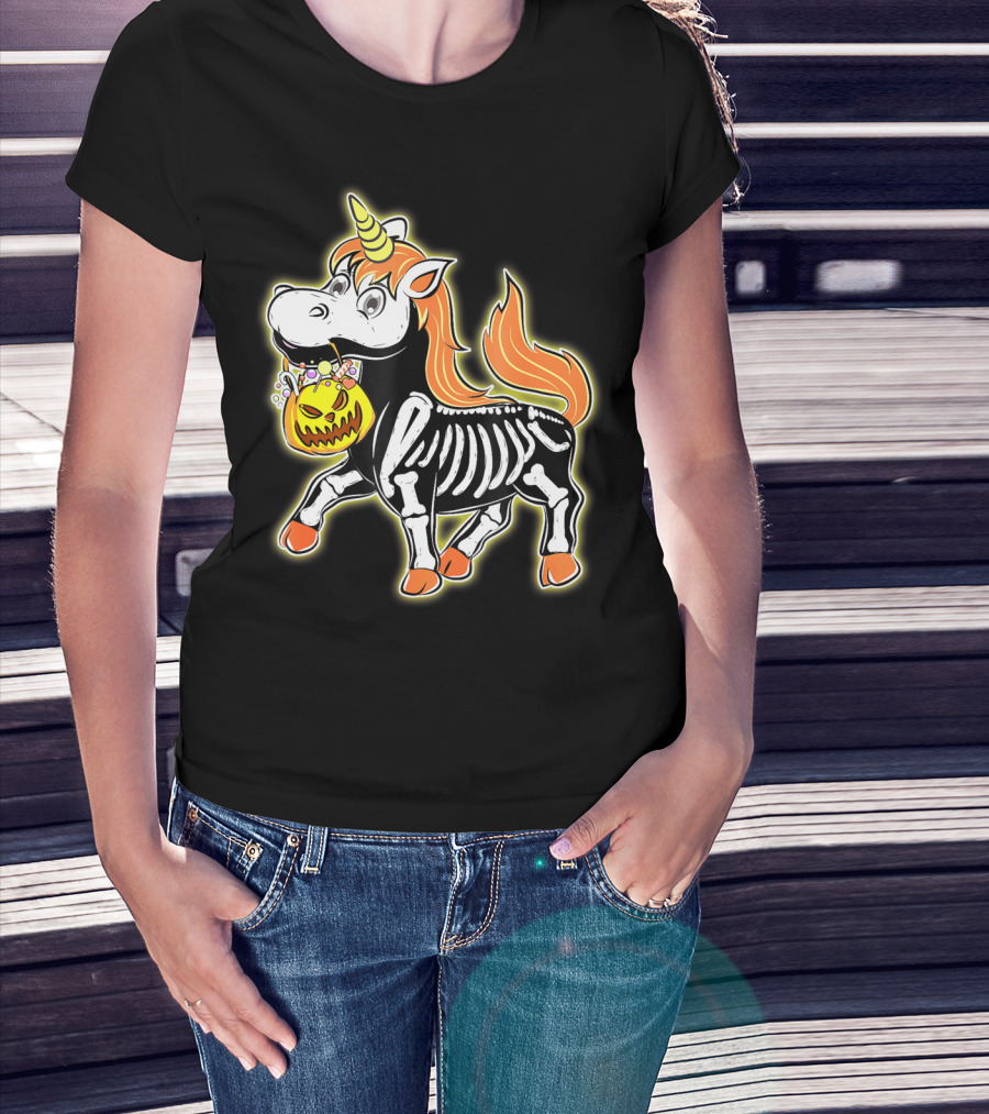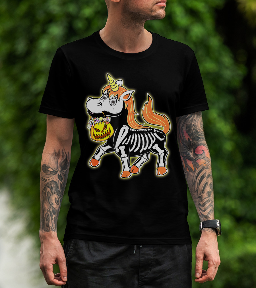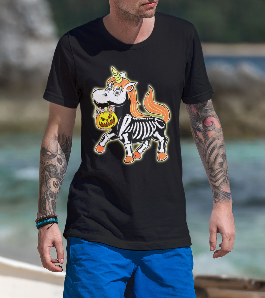 Skeleton Unicorn With Pumpkin Basket T-Shirt
