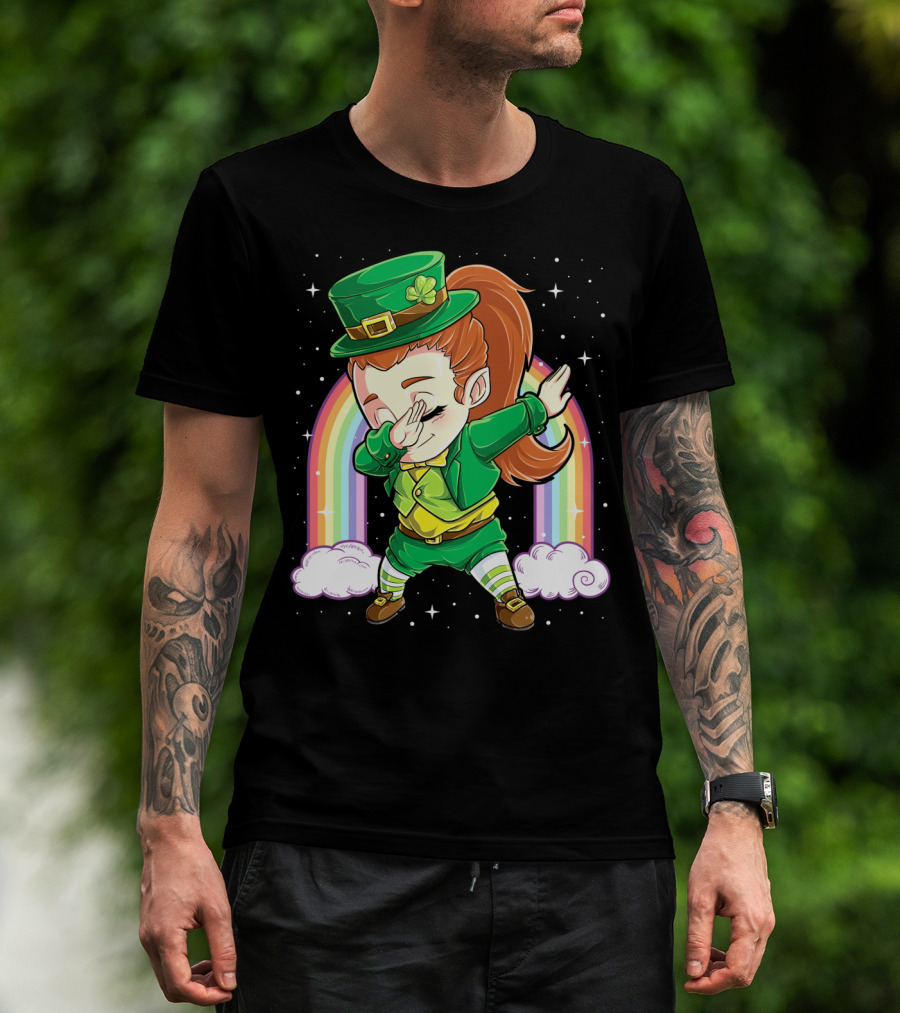 The Dabbing Leprechaun St Patricks Day Women Dab Rainbow Special T-shirt is designed for everyday wear and a consistent fit. Fabric is pre-shrunk ring-spun cotton with durable stitching. See the size chart below for exact measurements.