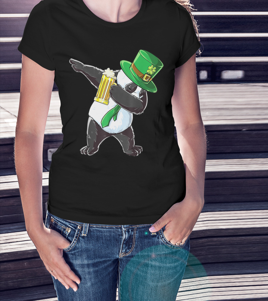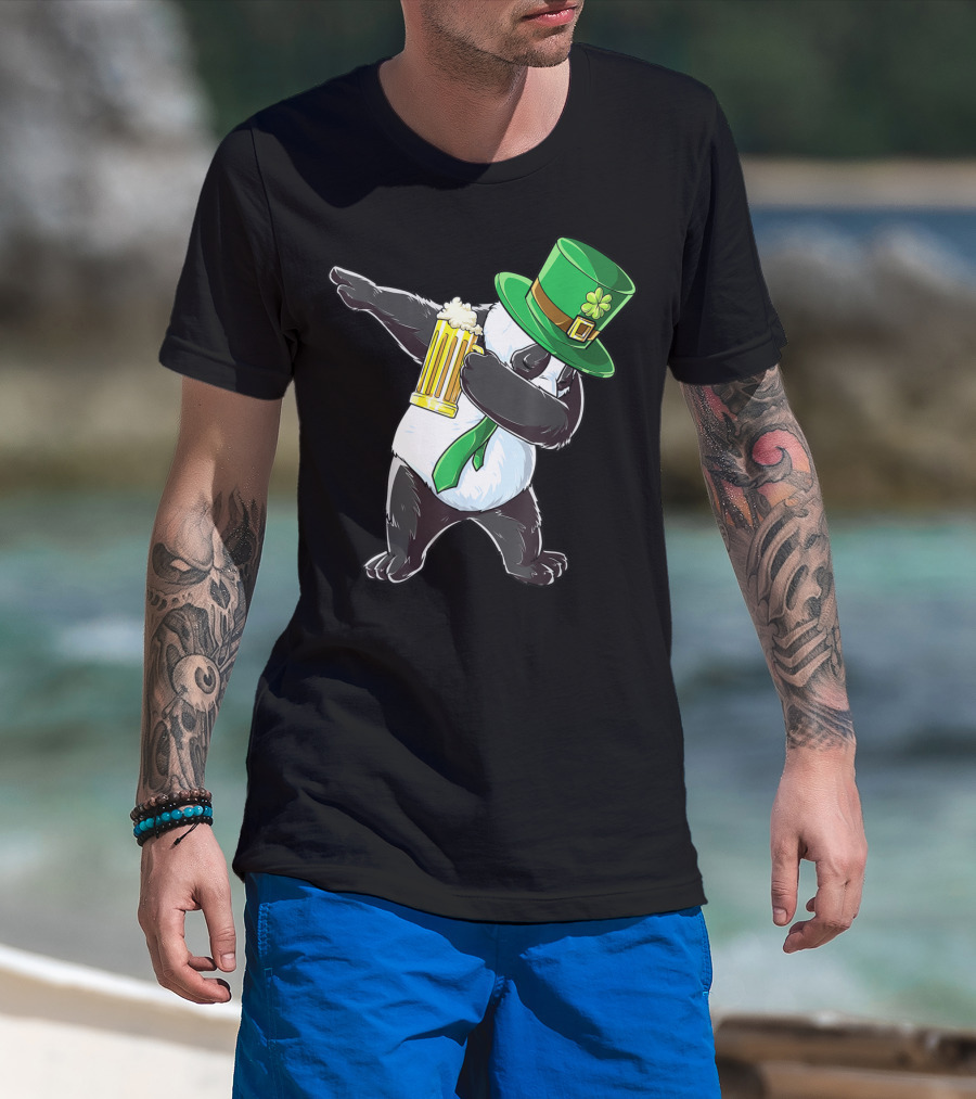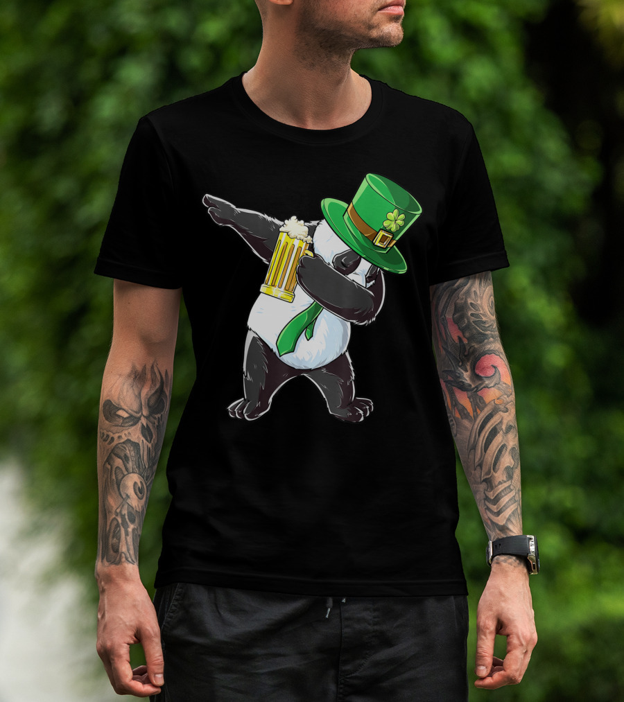 Dabbing Panda With Green Leprechaun Hat And Beer T-Shirt