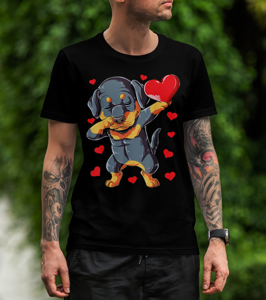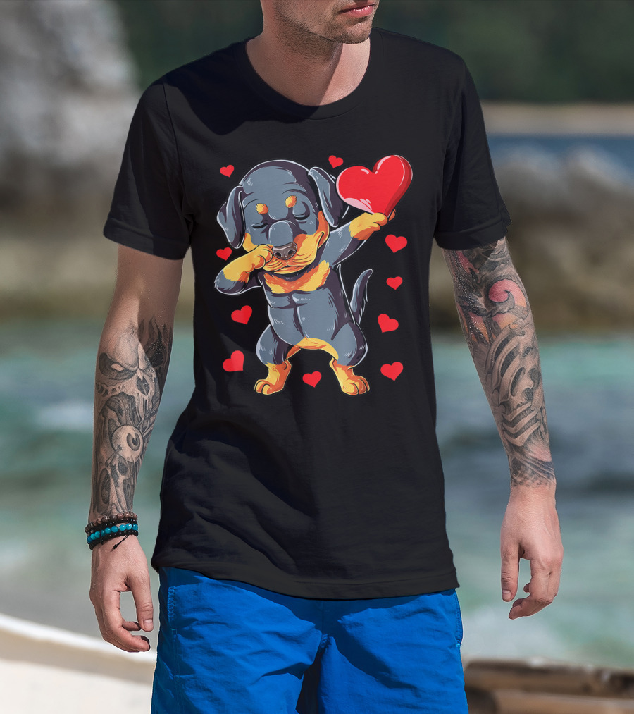 Dabbing Rottweiler Valentines Day Dog Lover Heart Dance With Love T-Shirt