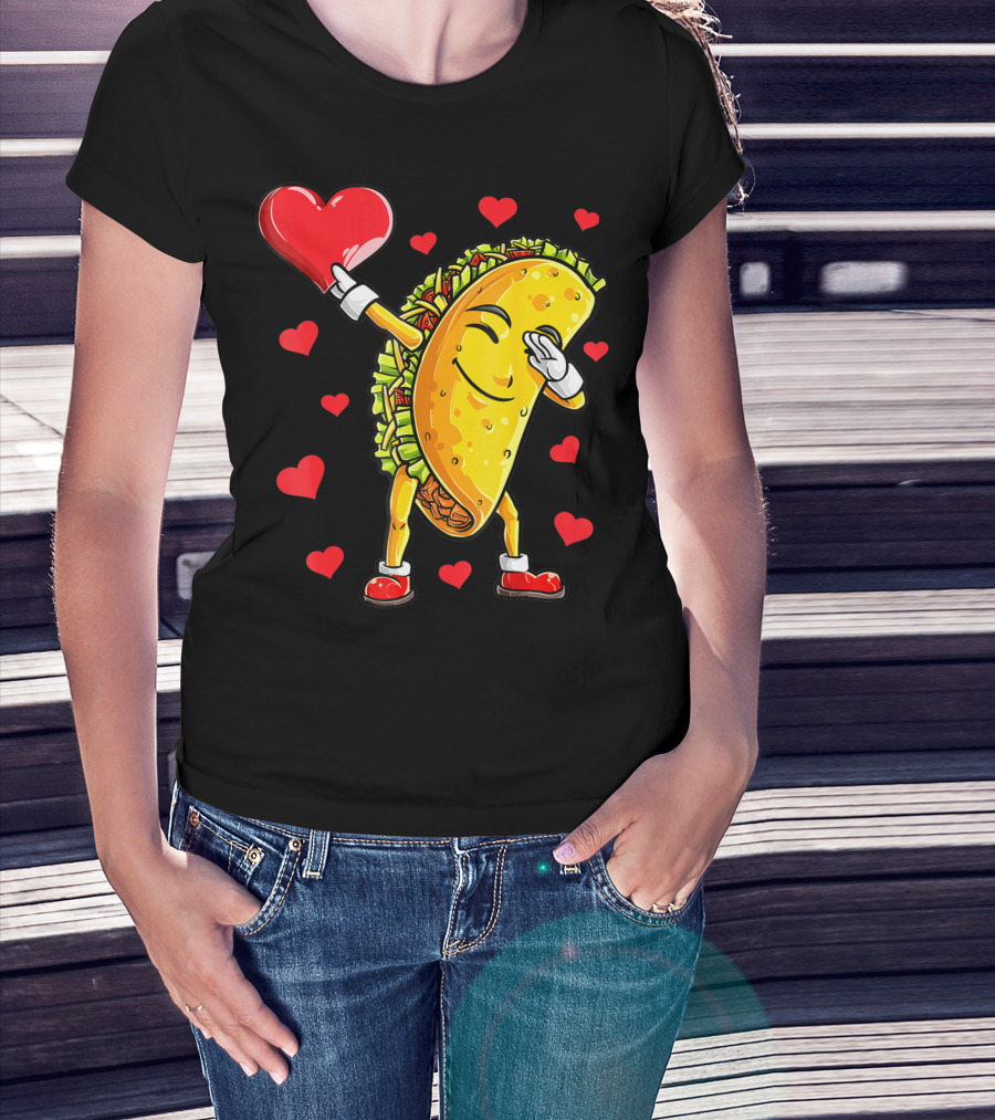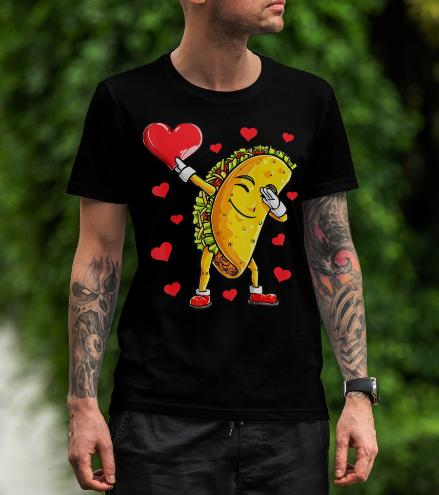 Dabbing Taco Heart Valentines Day Food Lovers Boys T-Shirt