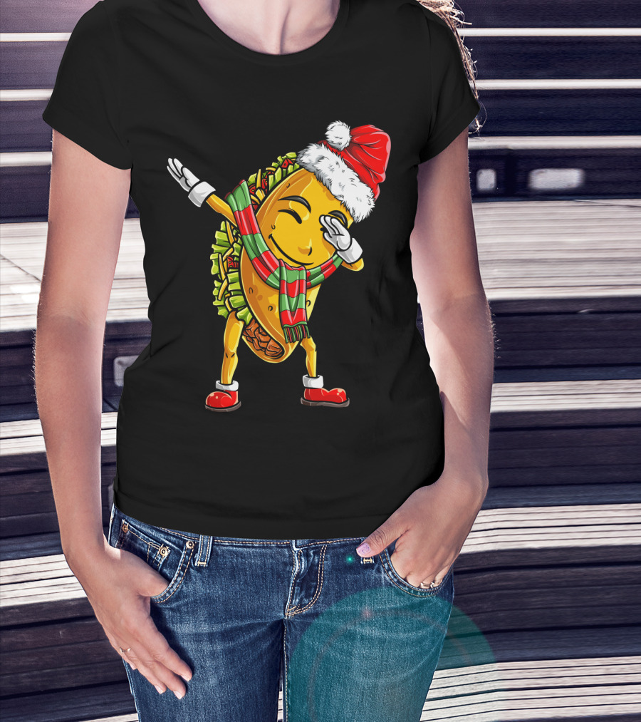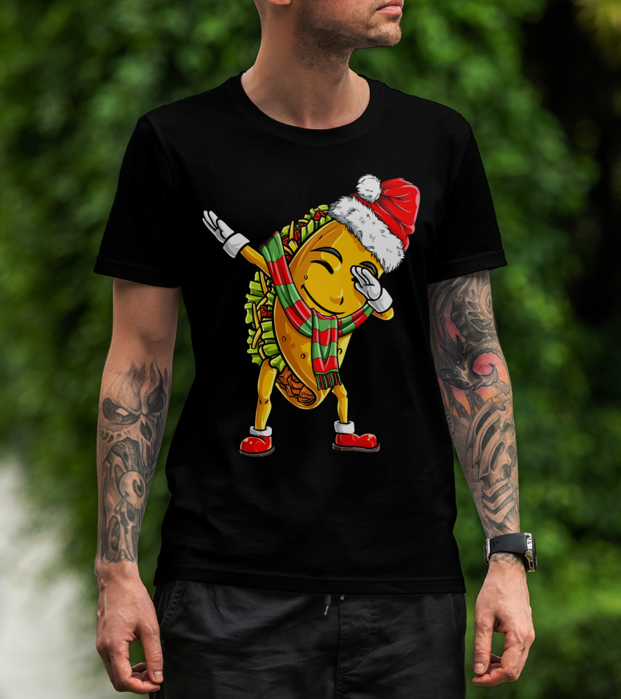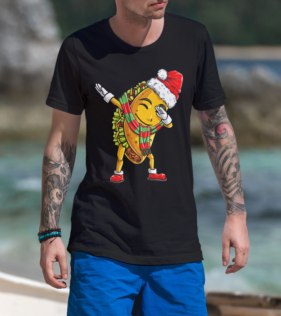 Dabbing Santa Taco With Christmas Hat And Scarf T-Shirt
