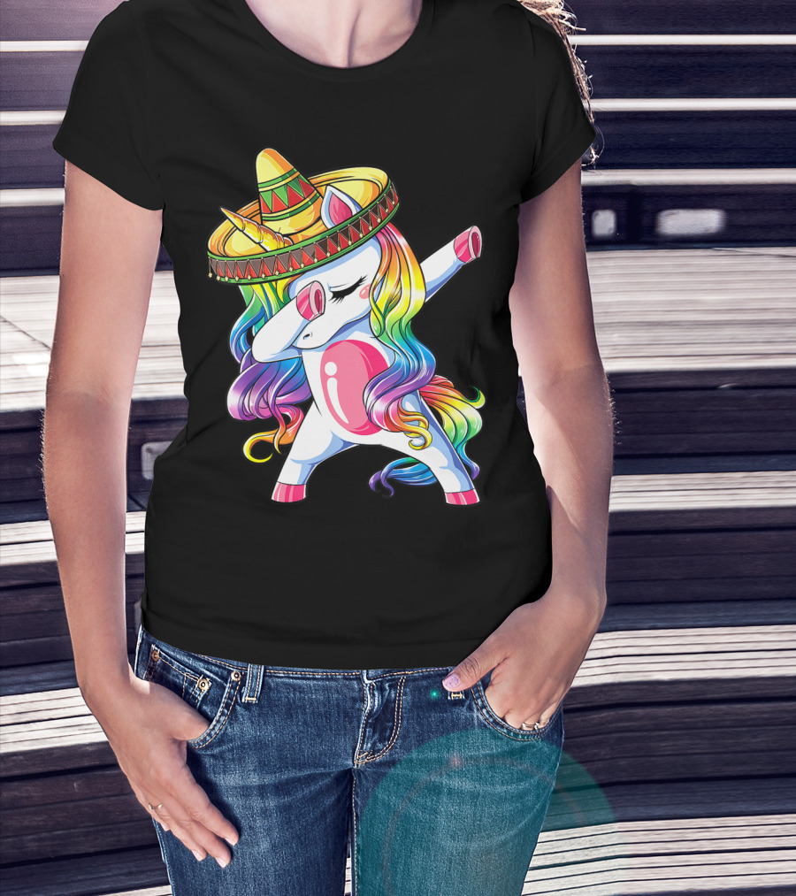 Funny Dabbing Unicorn Rainbow Sombrero Cinco De Mayo Women T-Shirt