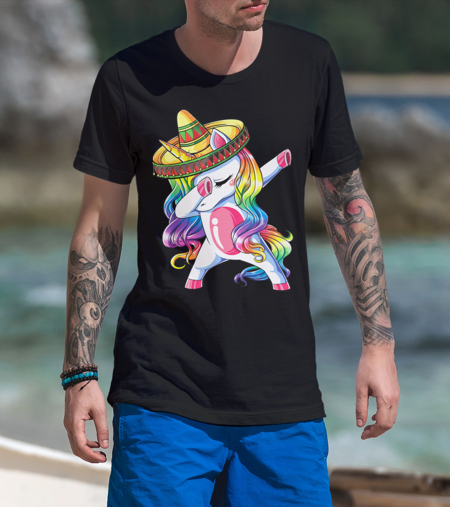 The Funny Dabbing Unicorn Rainbow Sombrero Cinco de Mayo Women T-shirt is designed for everyday wear and a consistent fit. Fabric is pre-shrunk ring-spun cotton with durable stitching. See the size chart below for exact measurements.