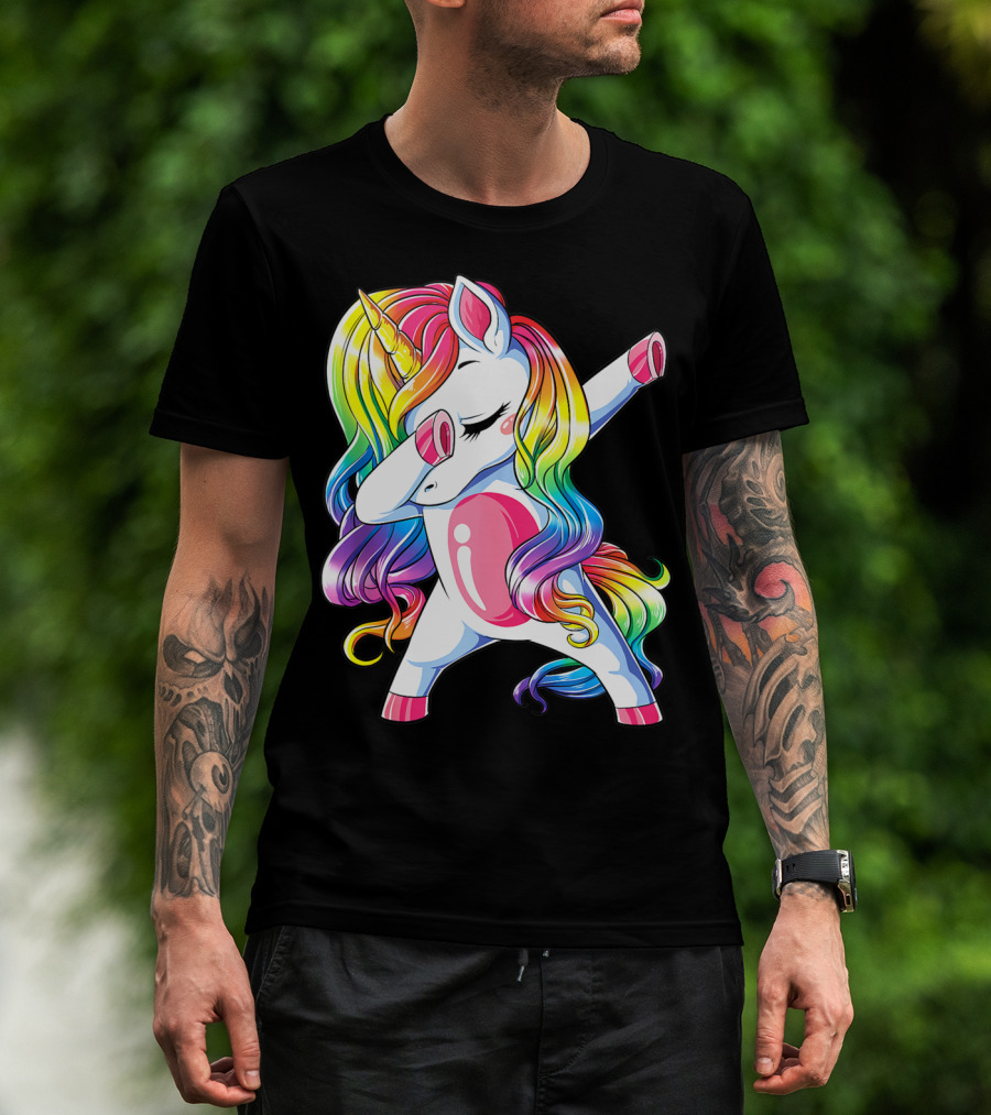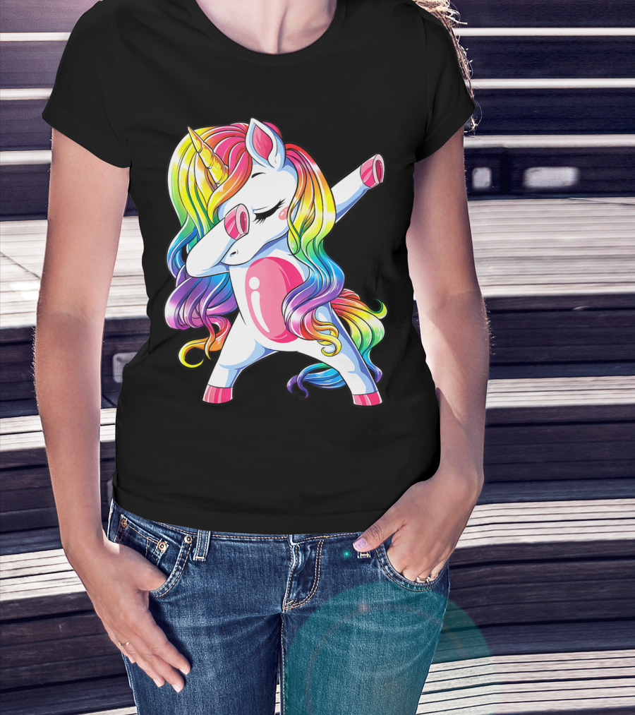 The Dabbing Unicorn Rainbow Dance Squad Women Funny Dab T-shirt is designed for everyday wear and a consistent fit. Fabric is pre-shrunk ring-spun cotton with durable stitching. See the size chart below for exact measurements.
