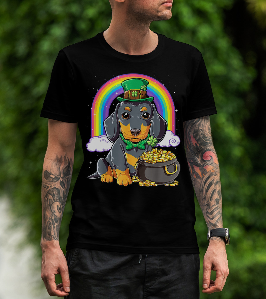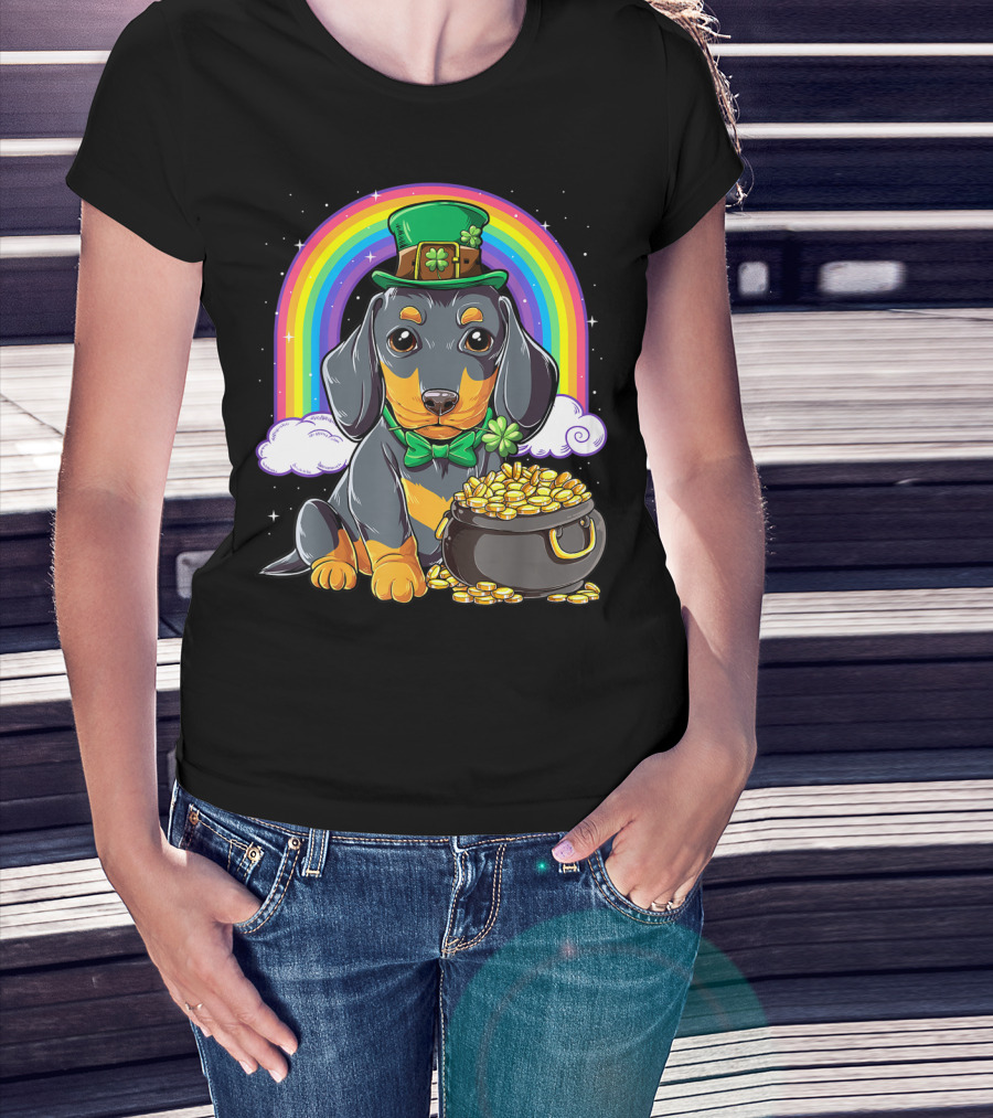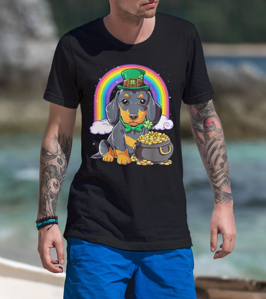 Dachshund St Patricks Day Leprechaun Rainbow Pot Of Gold T-Shirt