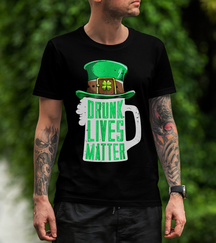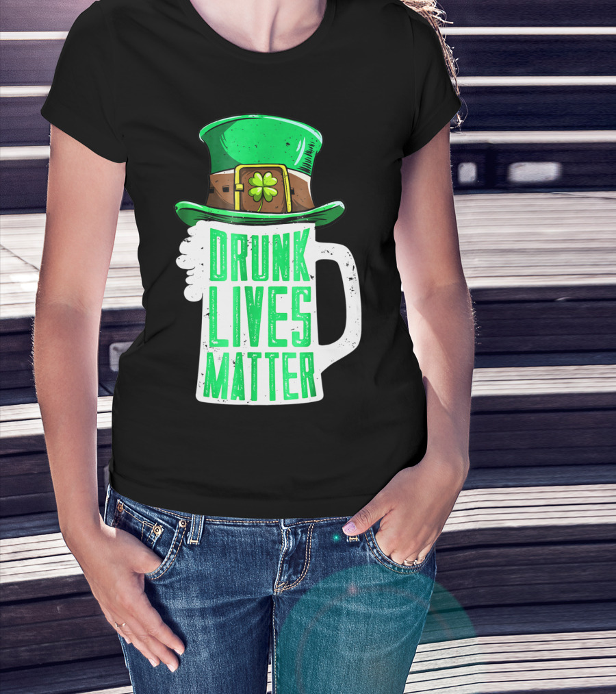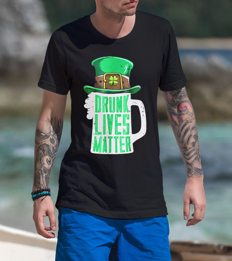 Drunk Lives Matter St Patricks Day Beer Mug Leprechaun Hat T-Shirt