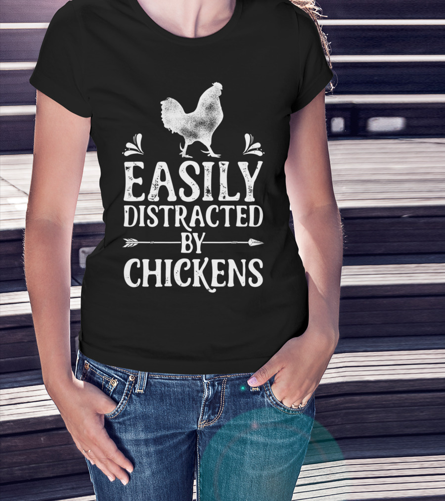 Easily Distracted By Chickens Funny Chicken Lover Rooster T-Shirt