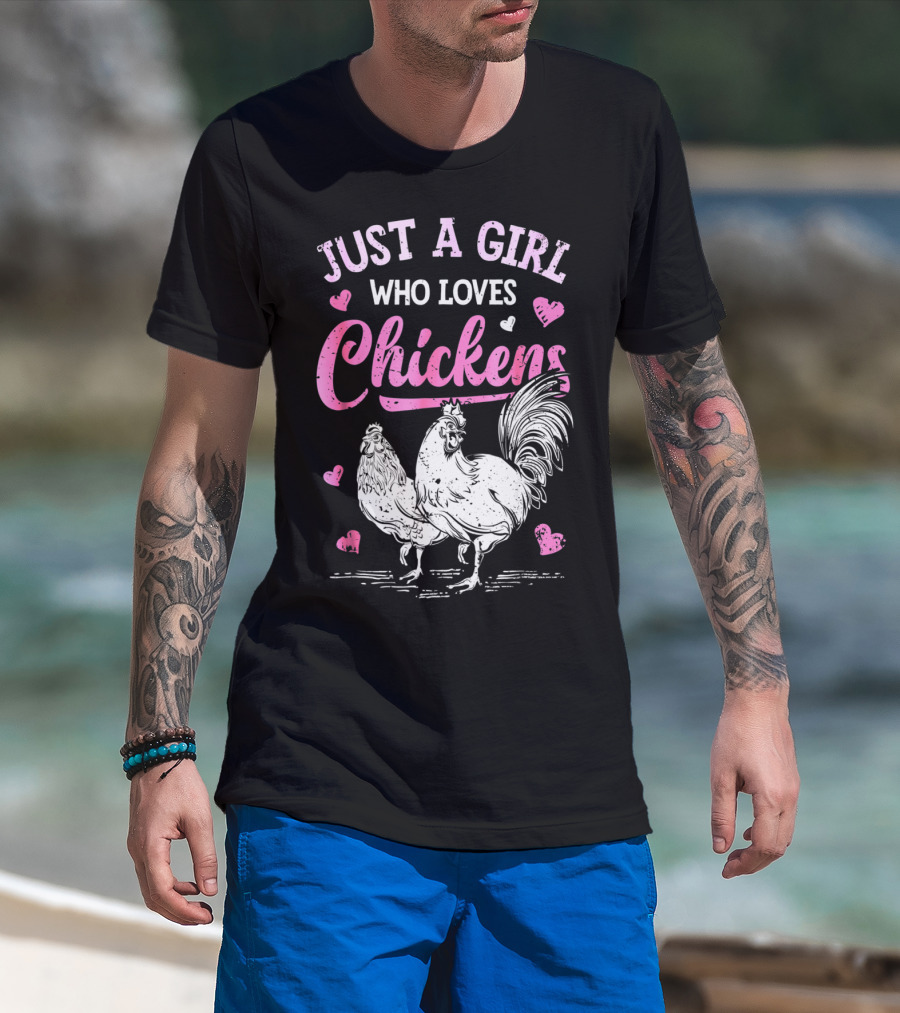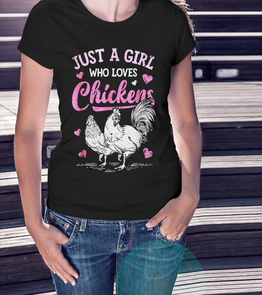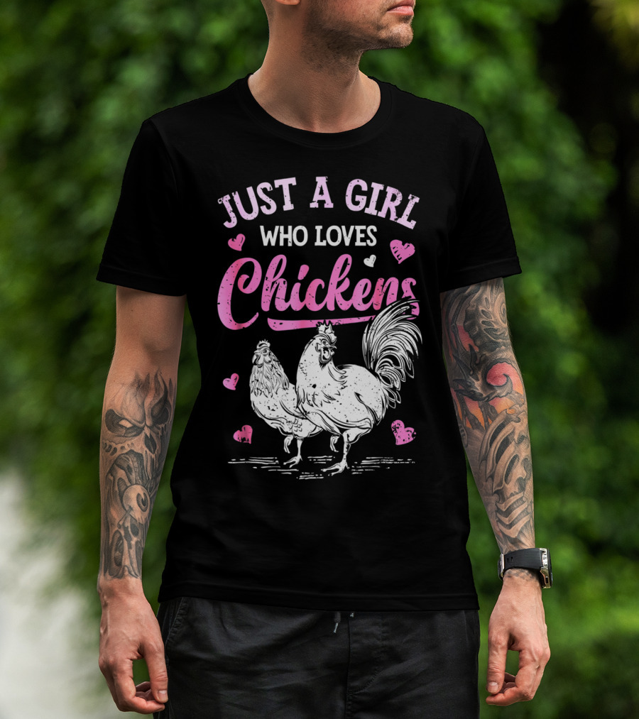 Just A Girl Who Loves Chickens With Heart Accents And Rooster Hen T-Shirt