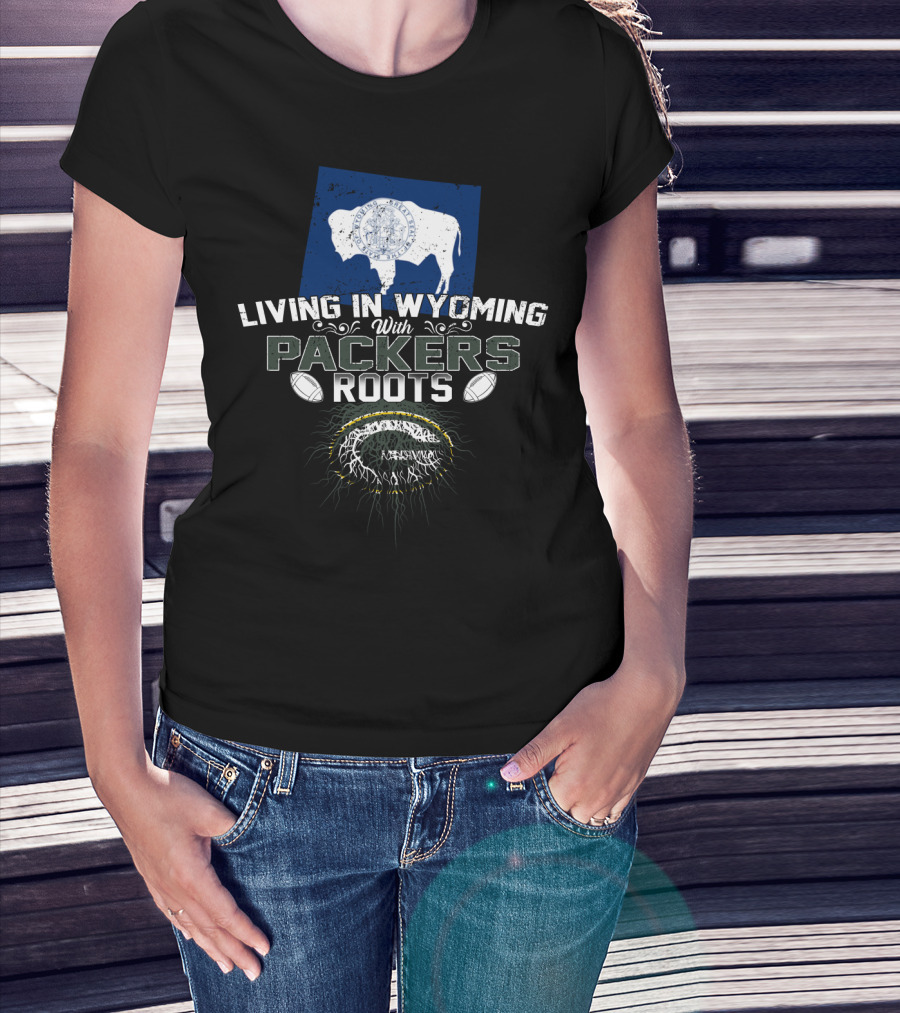 Living In Wyoming With Packers Roots Football Heritage And Wyoming Flag Influence T-Shirt