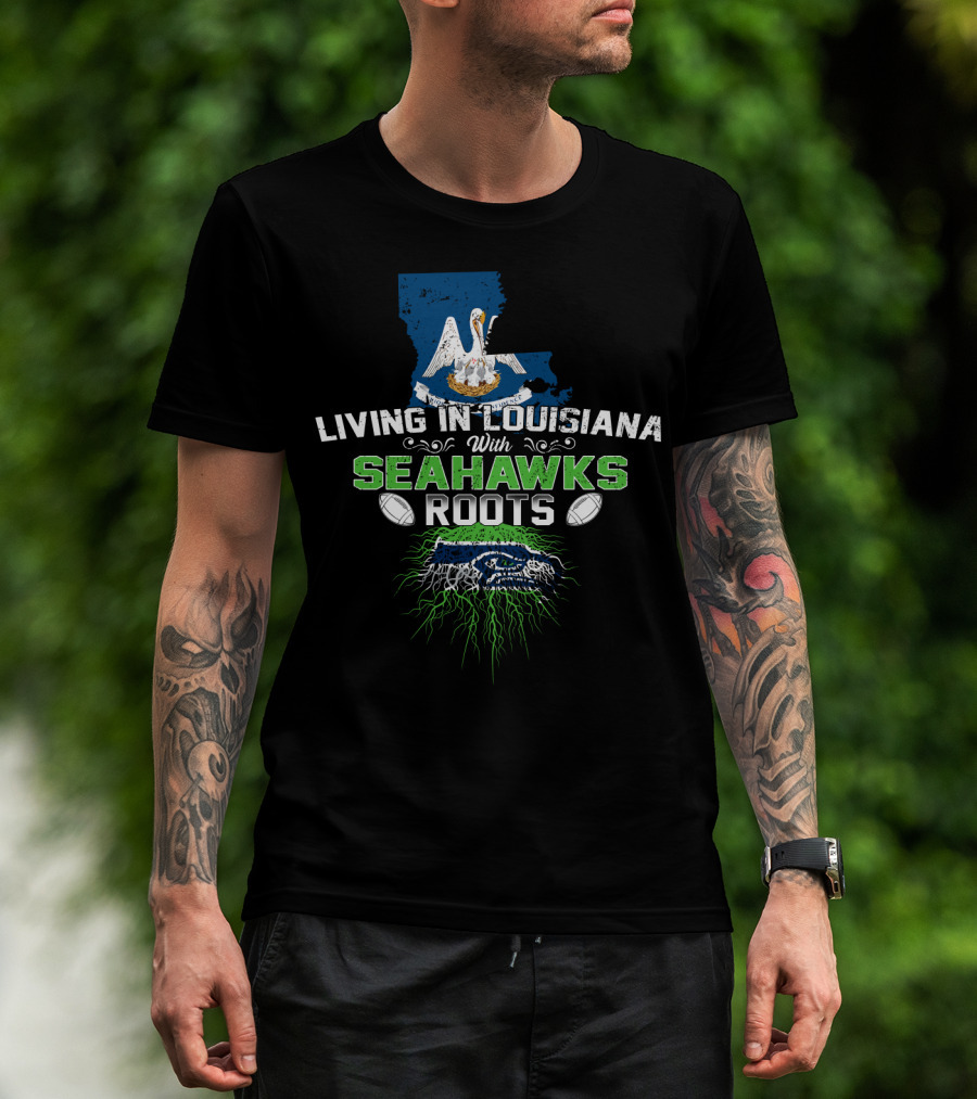 Living In Louisiana With SEAHAWKS Roots Map Pelican Football T-Shirt