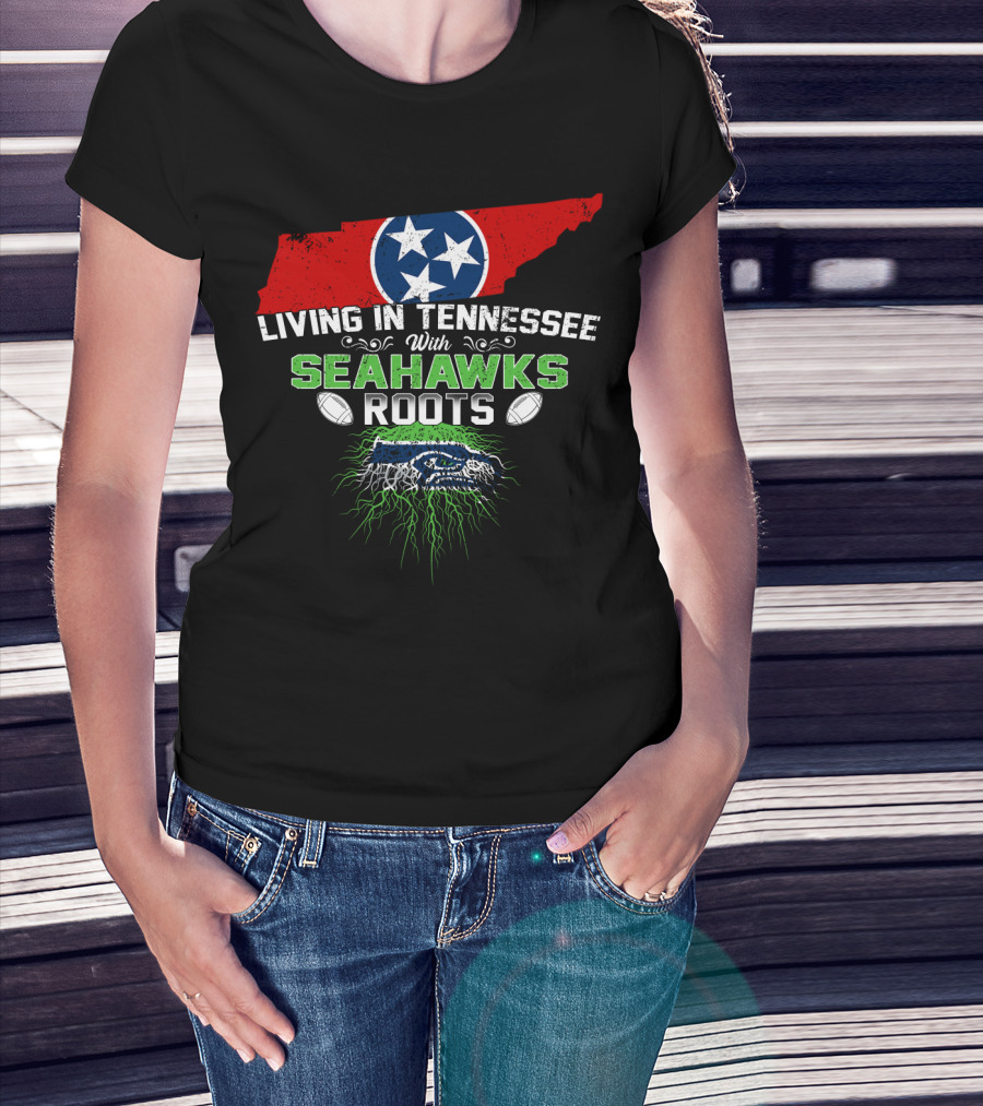 Living In Tennessee With Seahawks Roots And Tennessee Flag Map T-Shirt