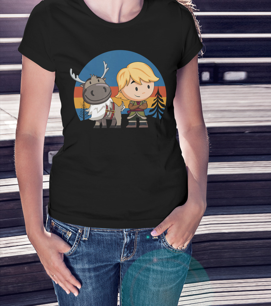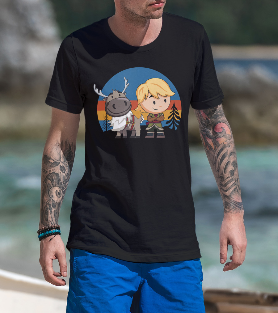 Frozen 2 Chibi Sven And Kristoff Retro Sunset Scene T-Shirt