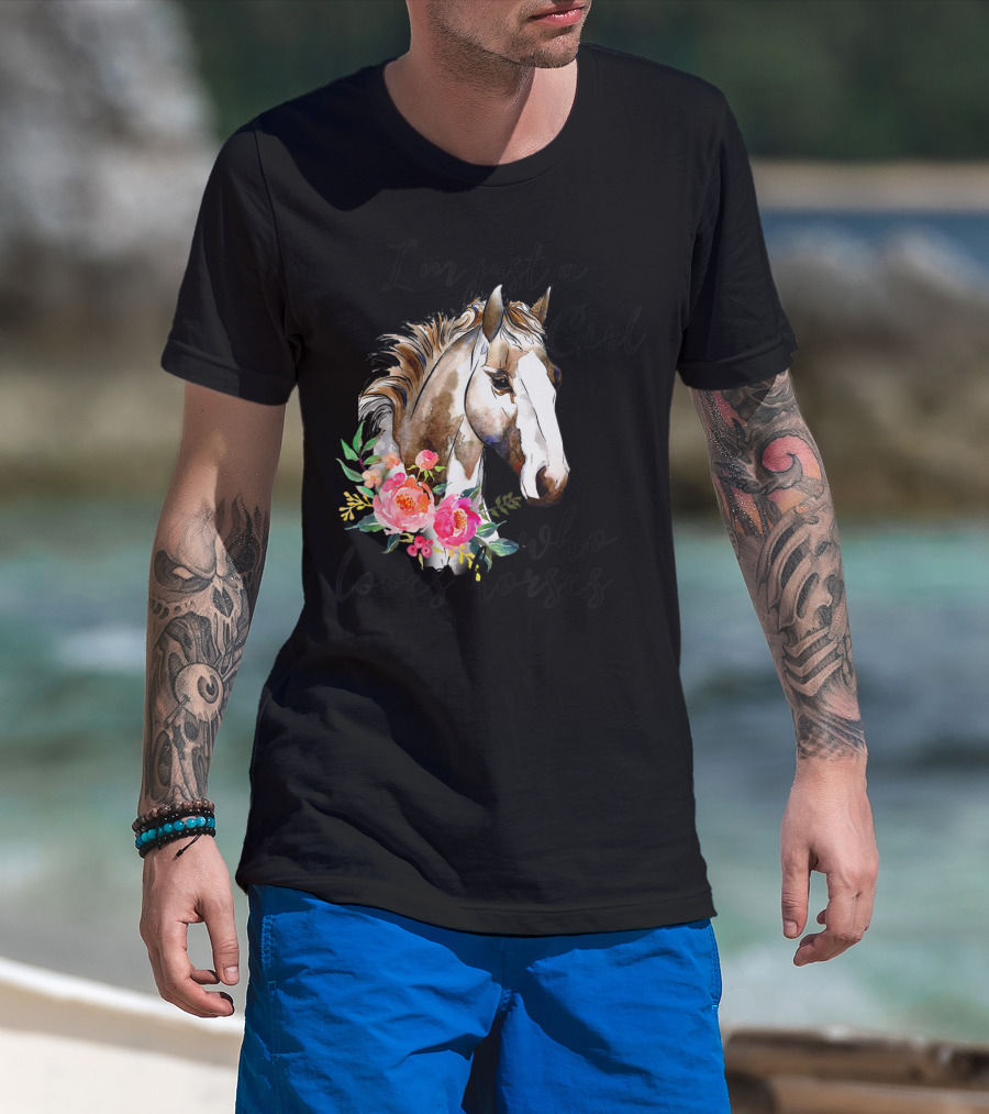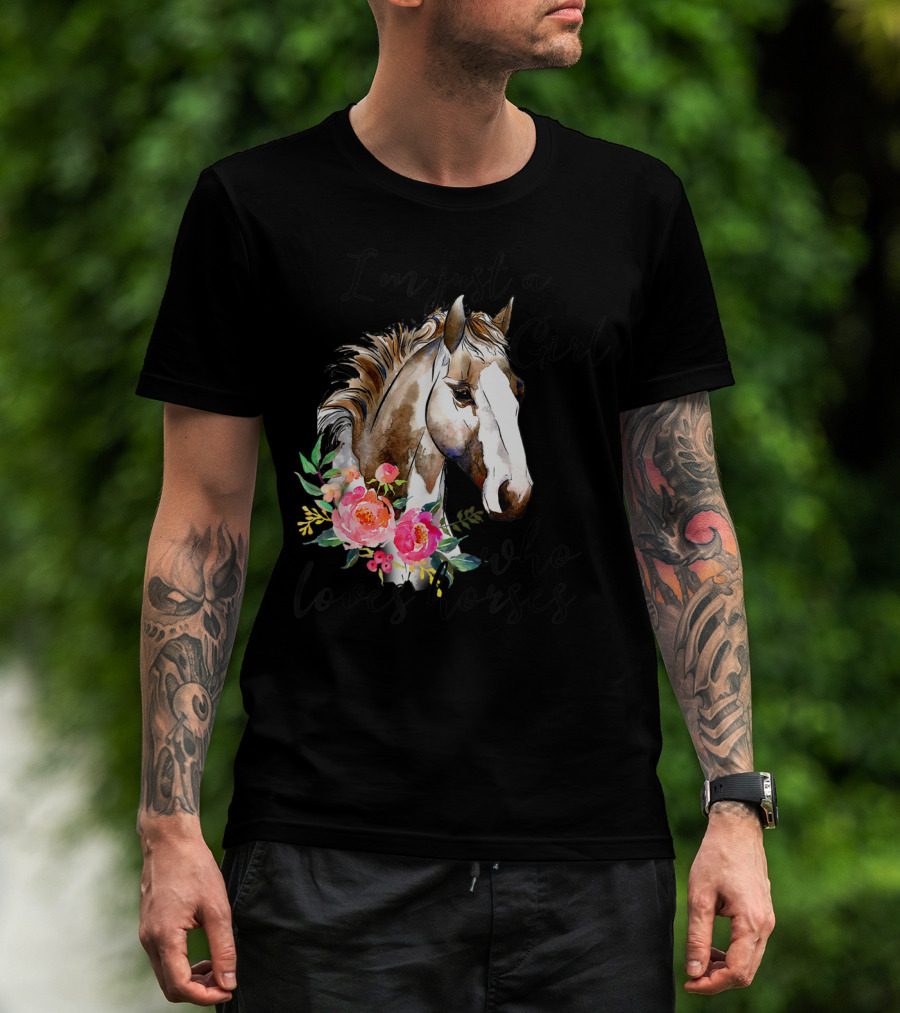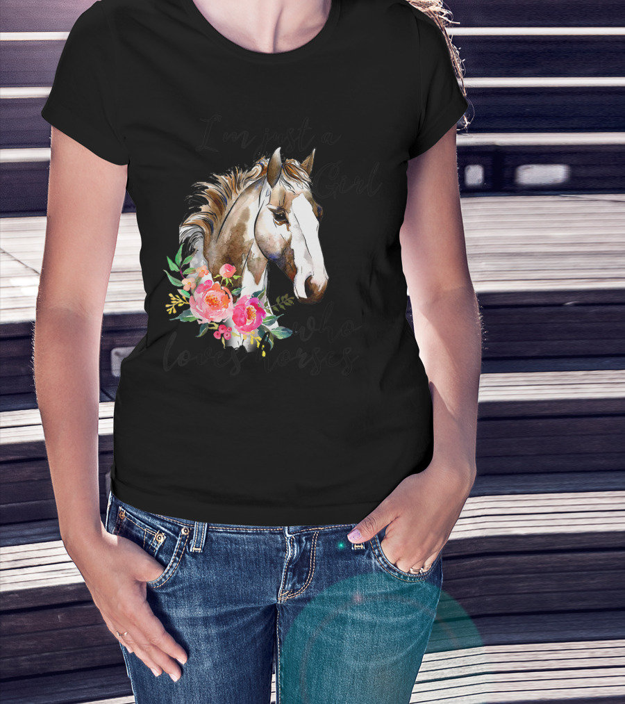 I'm Just A Girl Who Loves Horses Floral Horse T-Shirt