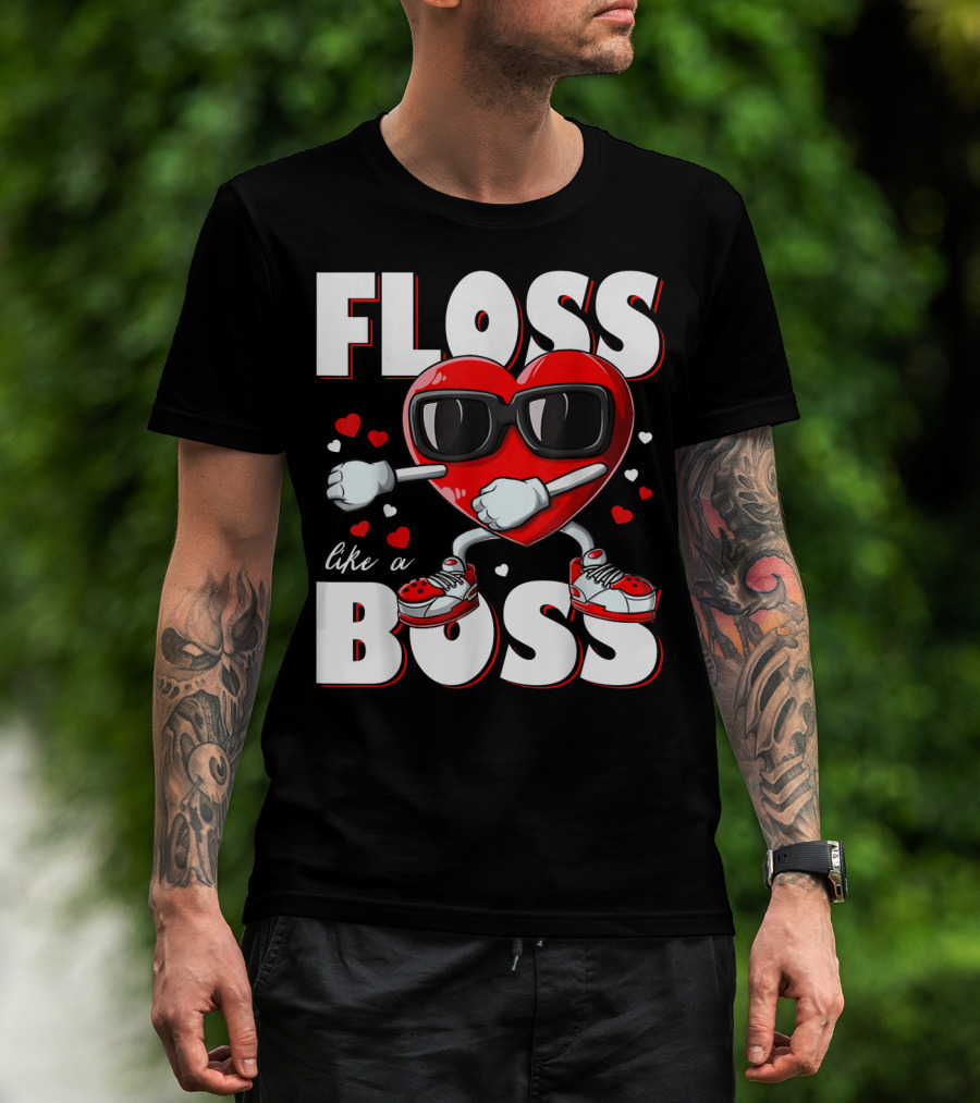 Floss Like A Boss Boys Valentines Day Kids Heart Flossing14 T-Shirt