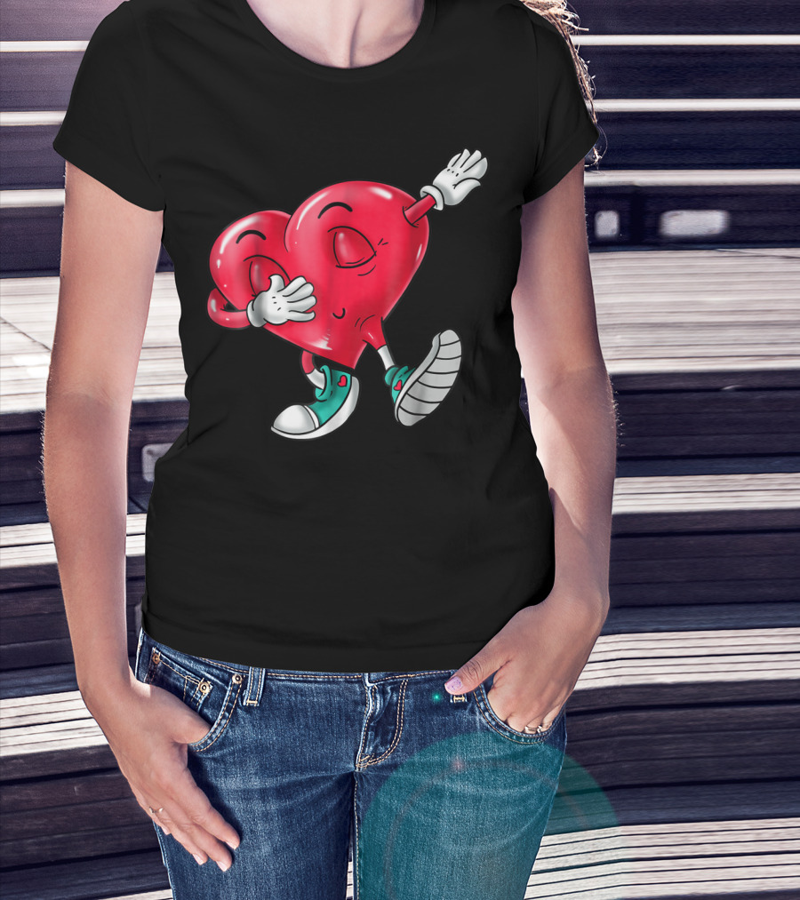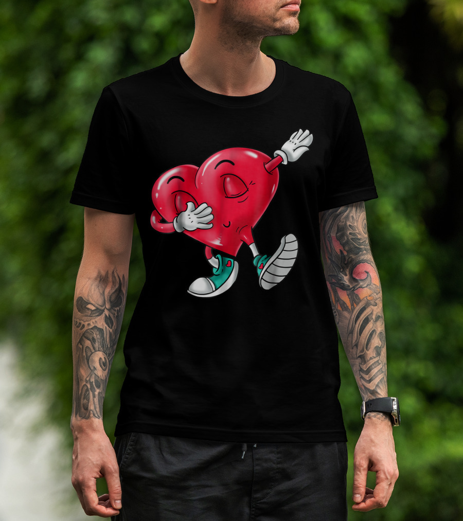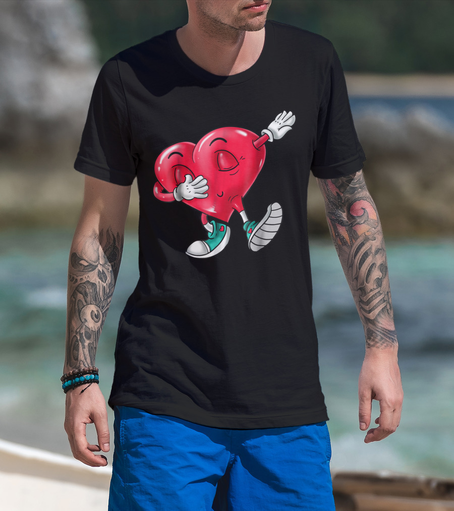 Dabbing Heart Valentine Kids Boys Love Day T-Shirt