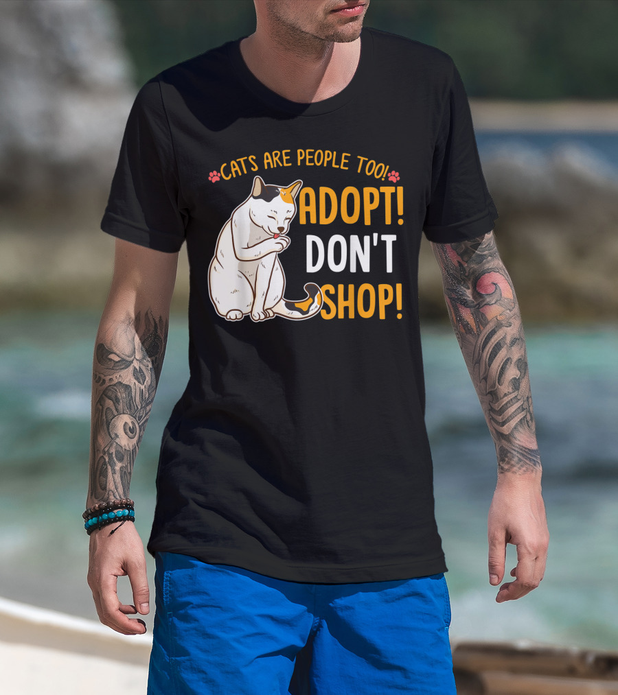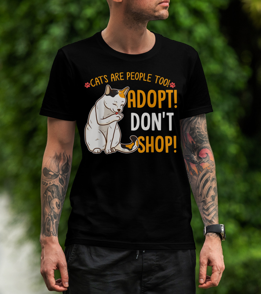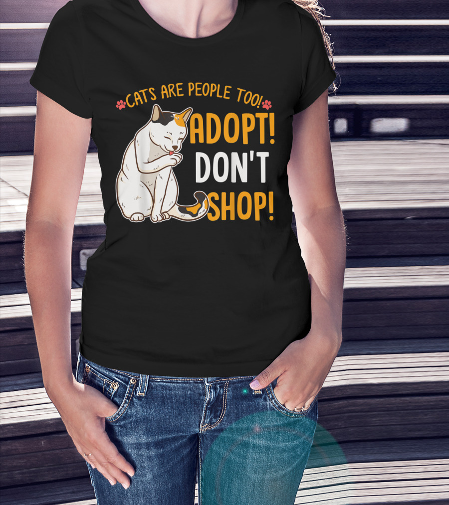 Cats Are People Too Adopt Don't Shop Rescue Cat Lover T-Shirt