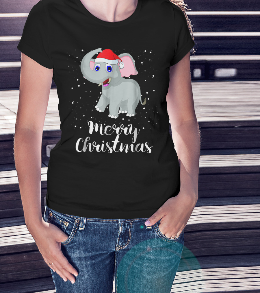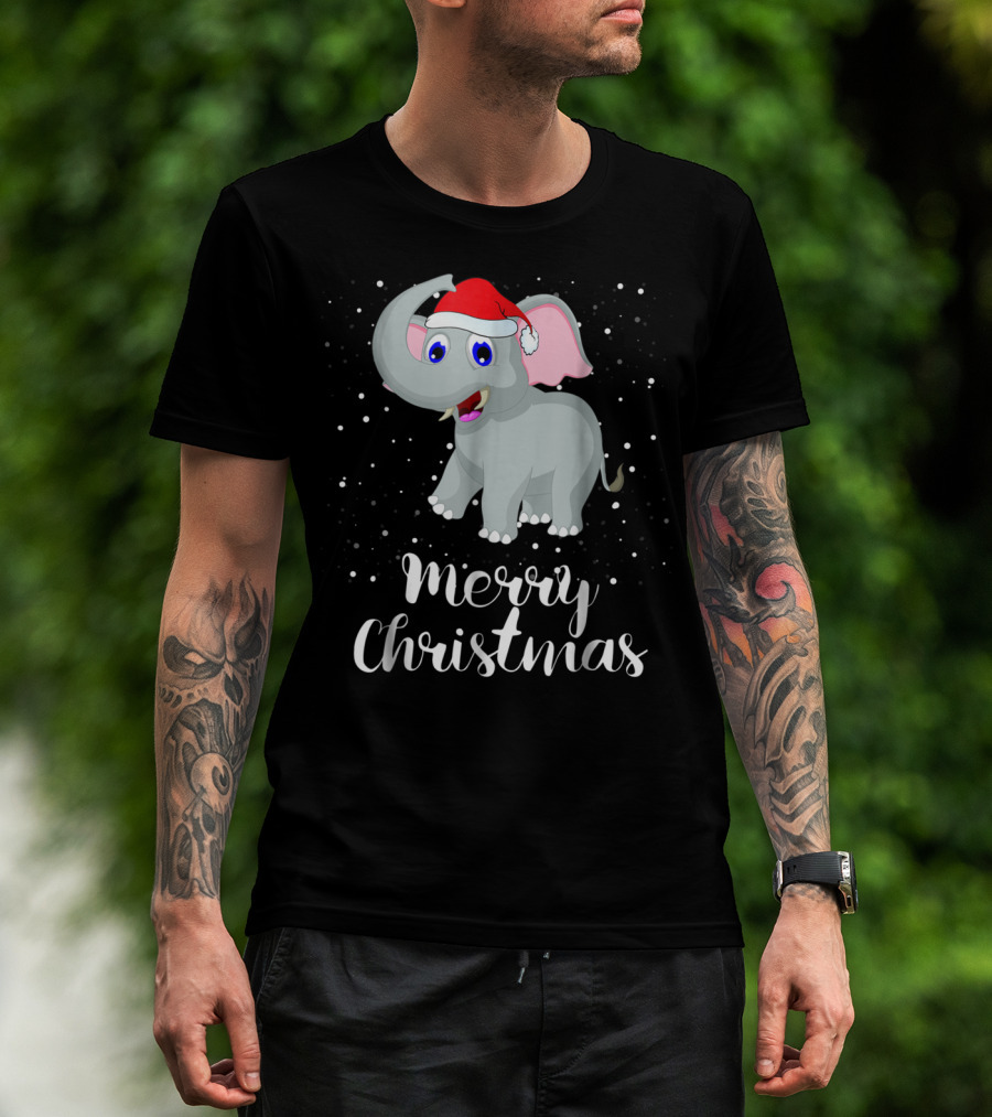 Merry Christmas Elephant Santa Hat Family Group T-Shirt