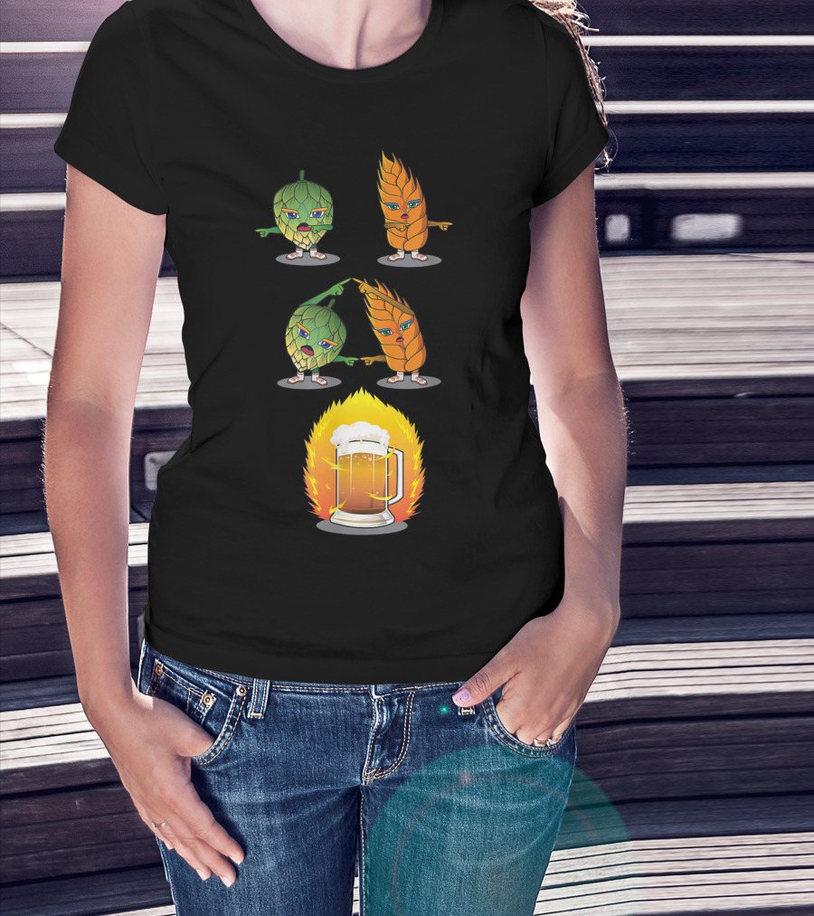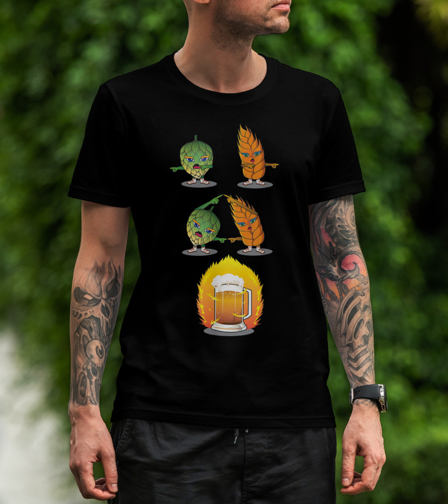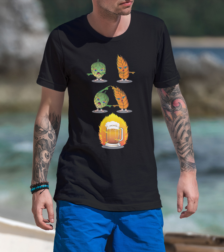 Funny Beer Fusion Hop And Malt Characters With Beer Mug Explosion T-Shirt