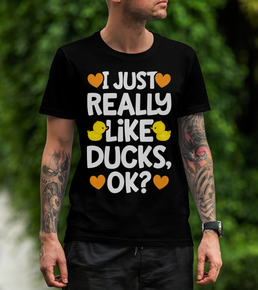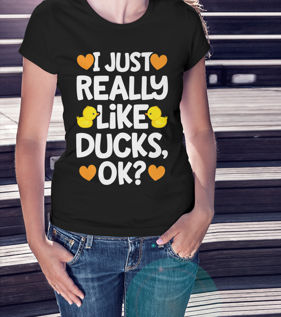 I Just Really Like Ducks OK Cute Yellow Duck Lover Hearts T-Shirt