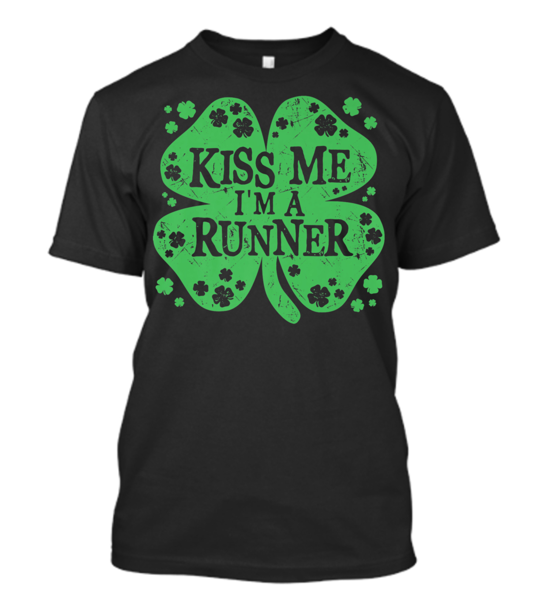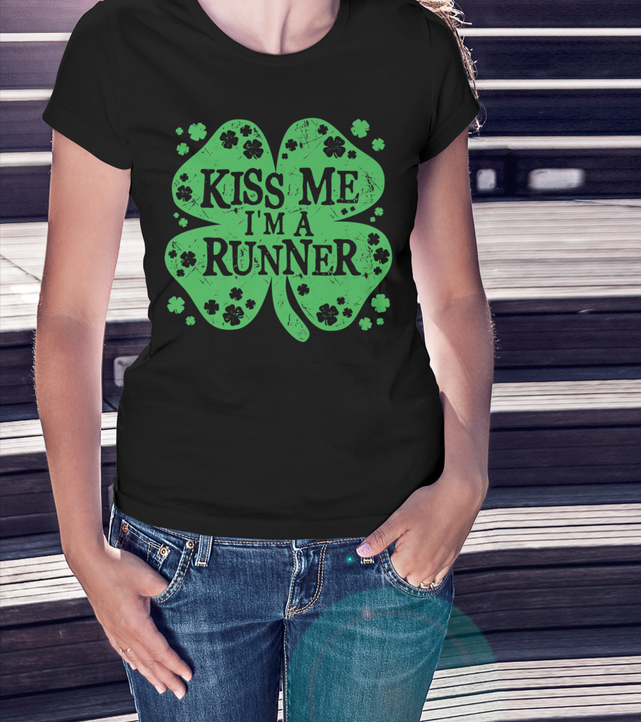 Kiss Me I'm A Runner Four Leaf Clover Shamrock St Patrick's Day T-Shirt
