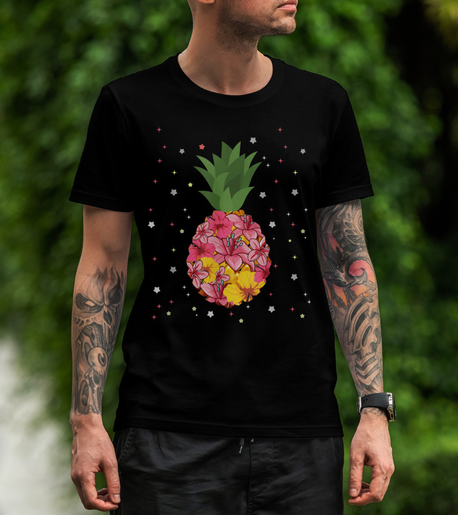 Pineapple Flowers Women Aloha Hawaii Vintage Hawaiian Floral Starry T-Shirt
