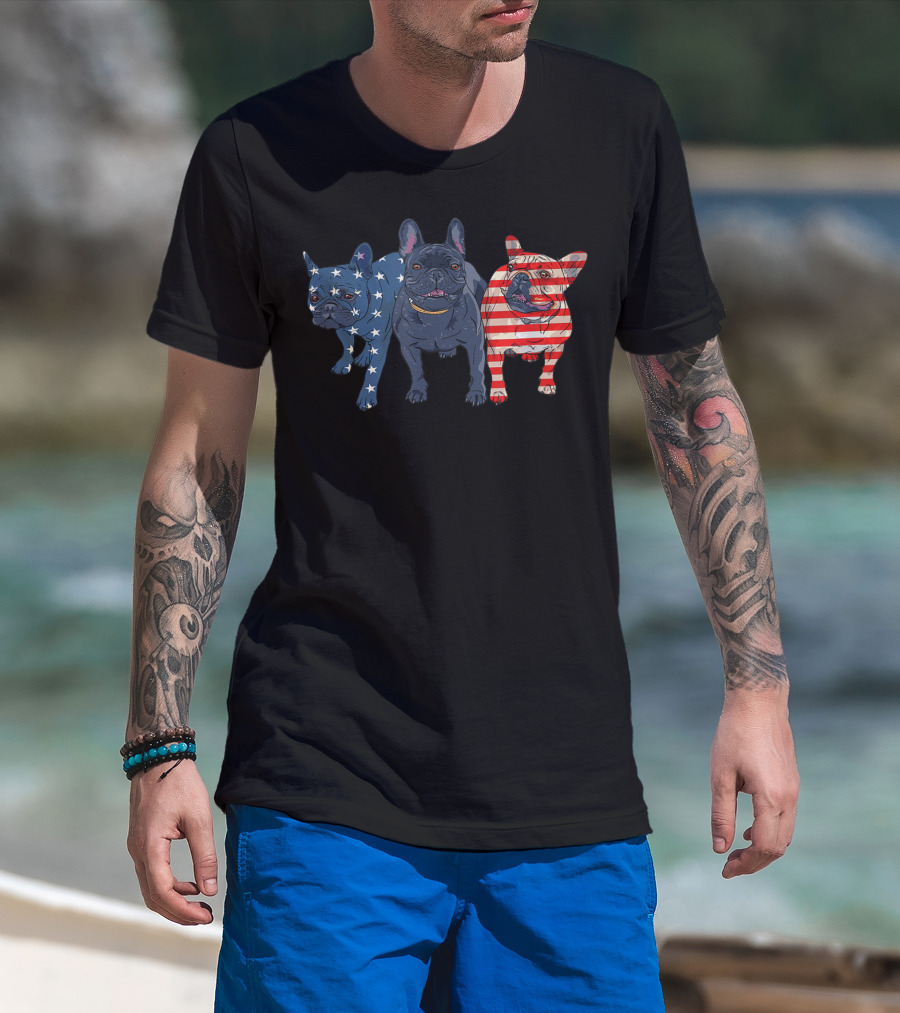 3 Frenchie Bulldog American Flag Stars Stripes July Patriot T-Shirt