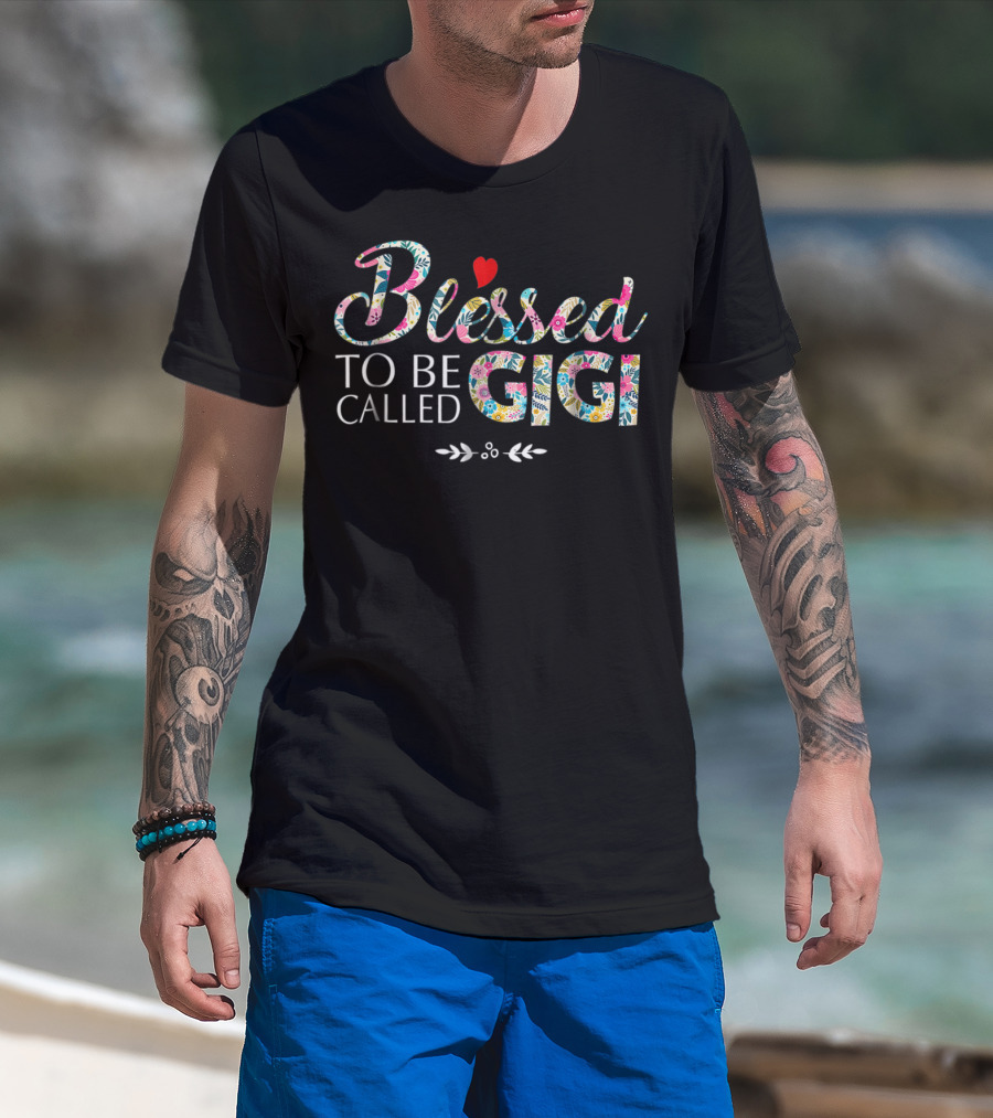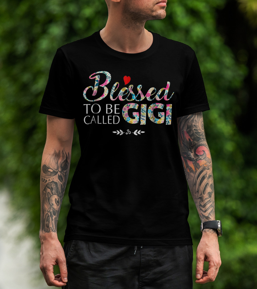 Blessed To Be Called Gigi Floral Pattern Heart T-Shirt