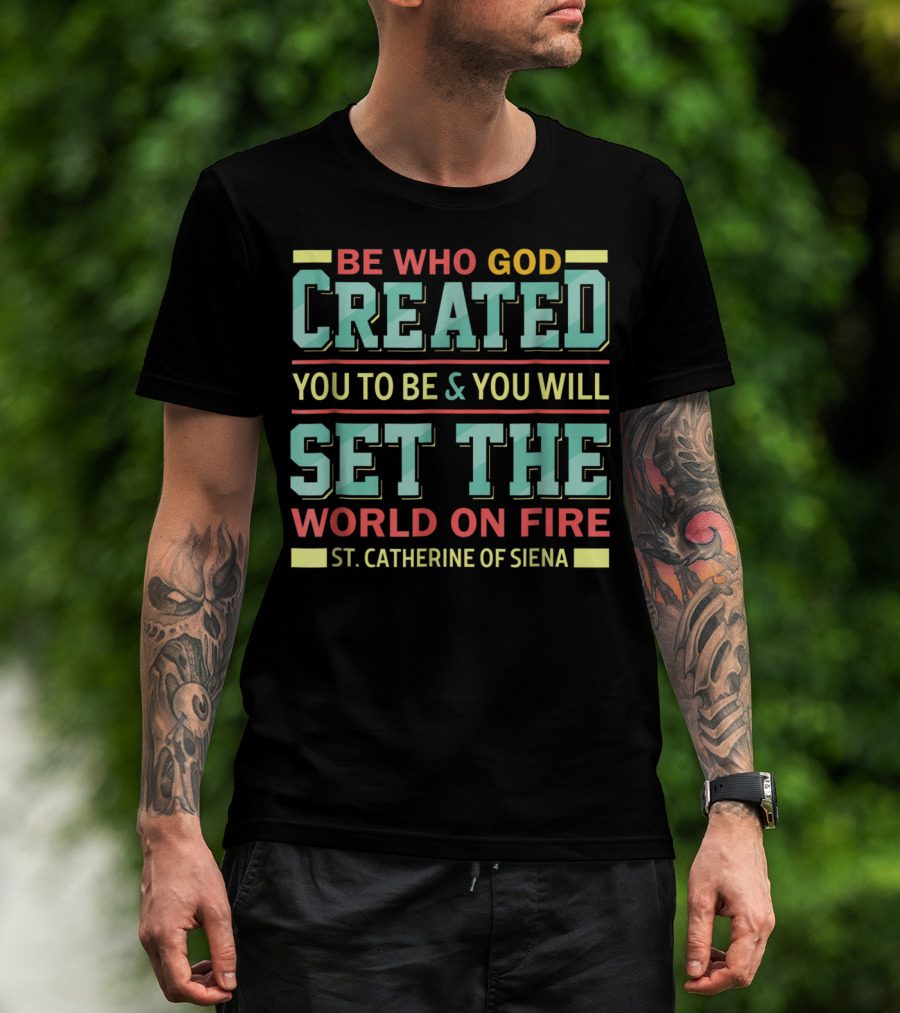 BE WHO GOD CREATED YOU TO BE And YOU WILL SET THE WORLD ON FIRE ST. CATHERINE OF SIENA T-Shirt