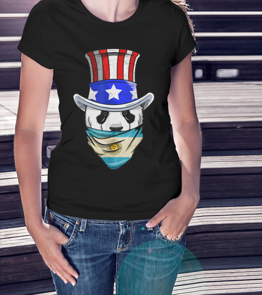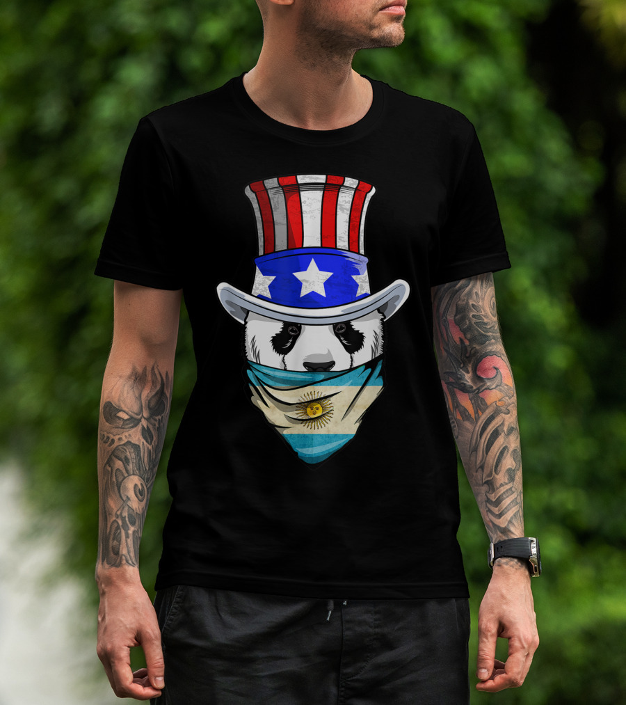 Argentinian Panda Bear In Argentina Bandana Flag With Uncle Sam Hat T-Shirt