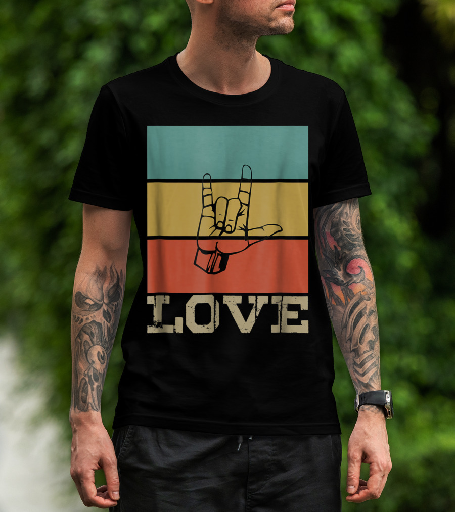 ASL Love Vintage Hand Sign Retro Color Blocks T-Shirt