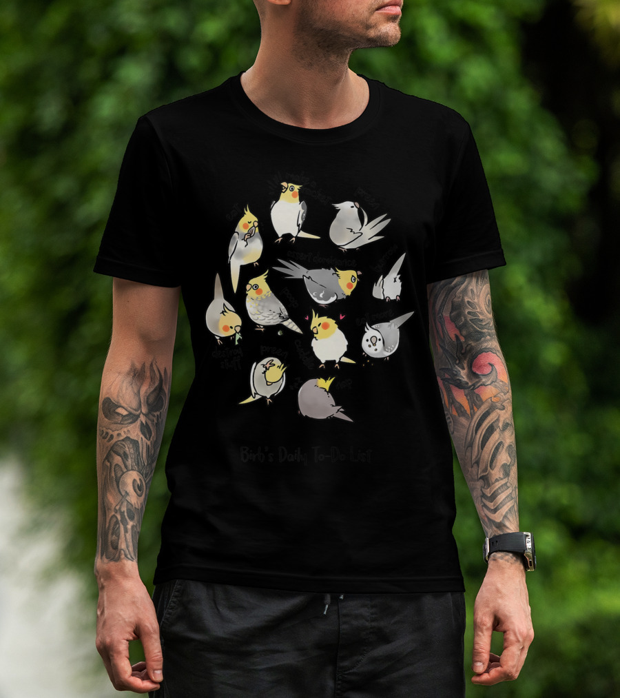Birb's Daily To-Do List: Eat, I'll Make A Racket, Preen, Assert Dominance, Destroy Stuff, Nap, Chill Out, Scream, Poop T-Shirt