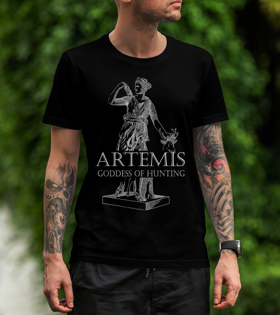 Artemis Goddess Of Hunting Greek Mythology Statue With Deer Scene T-Shirt