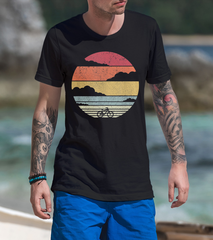 Retro Sunset Bicycle Ride With Stripes T-Shirt