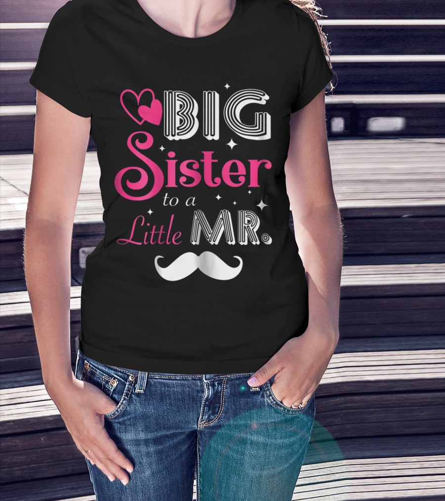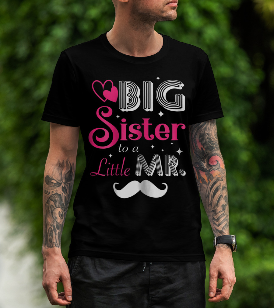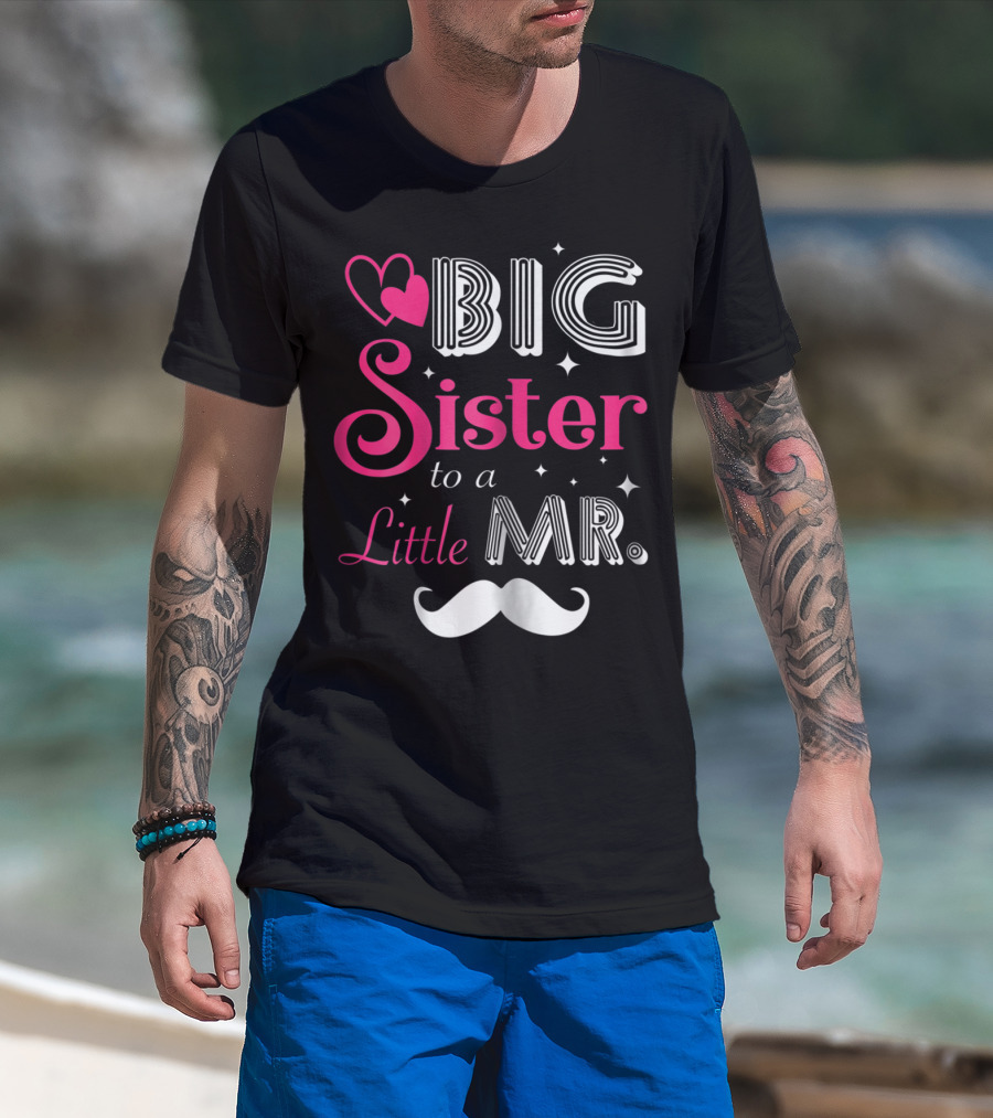 Big Sister To A Little Mister With Heart And Mustache T-Shirt