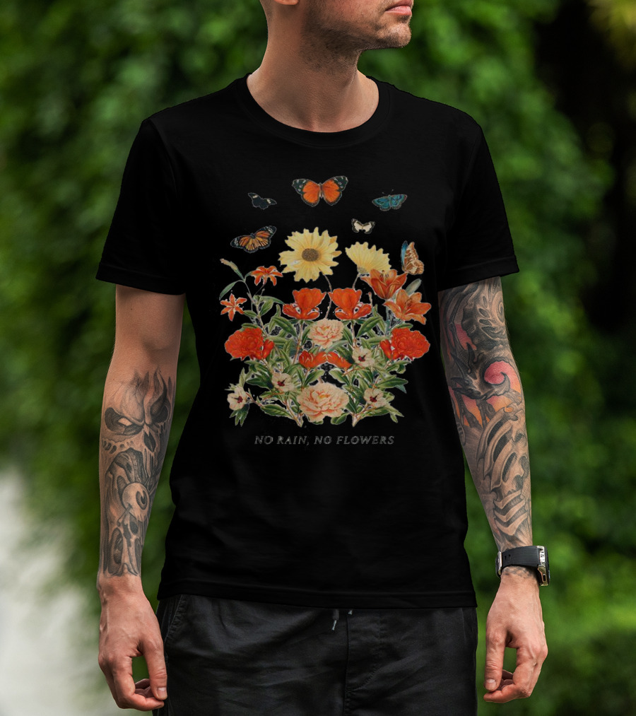 No Rain No Flowers Floral Butterflies T-Shirt