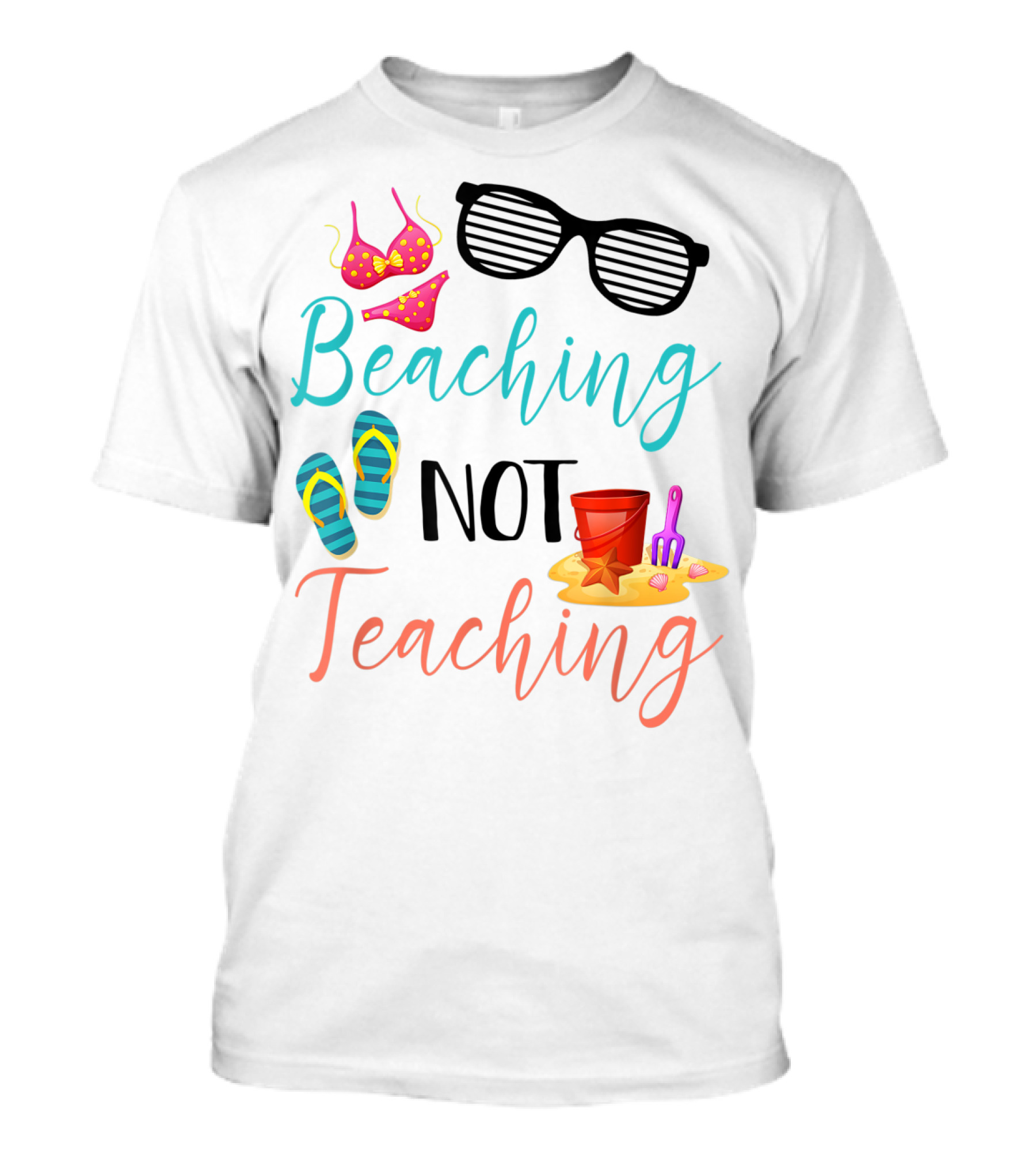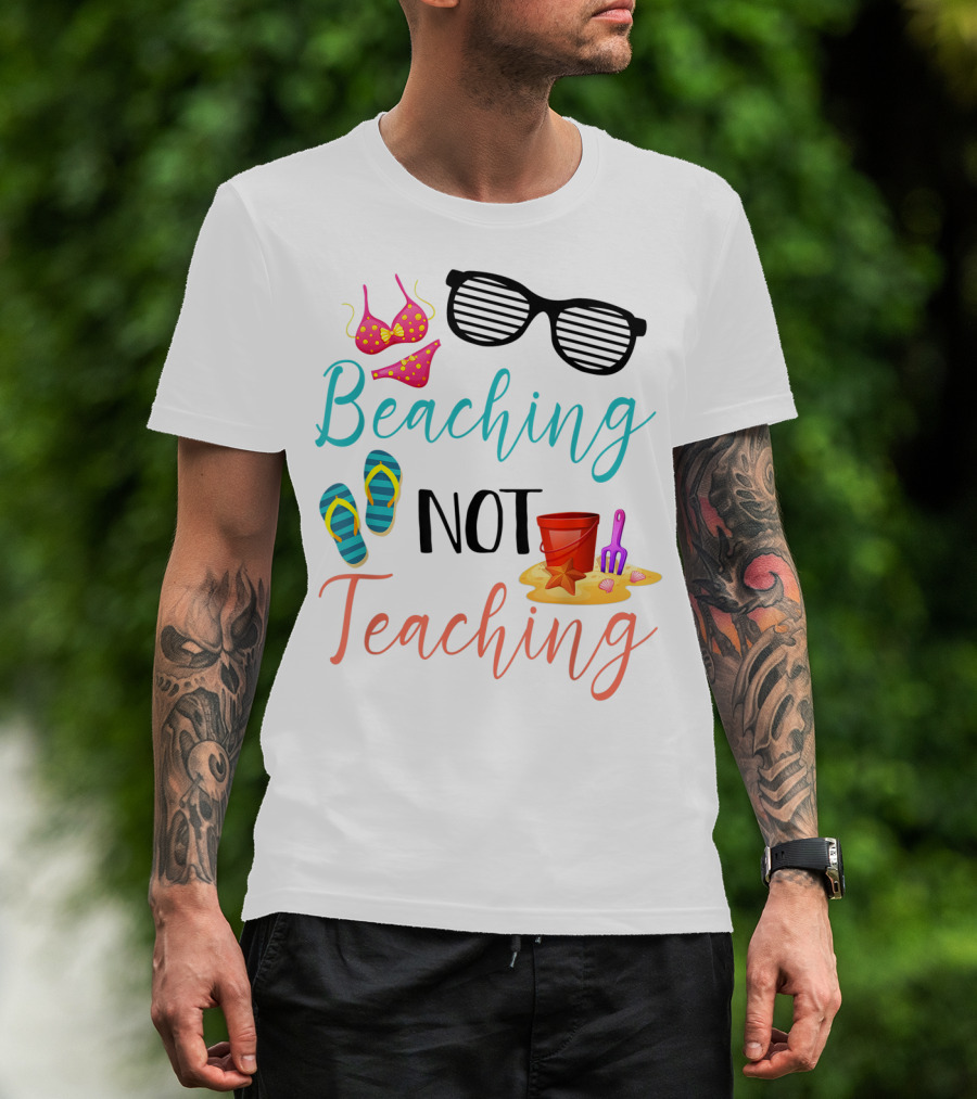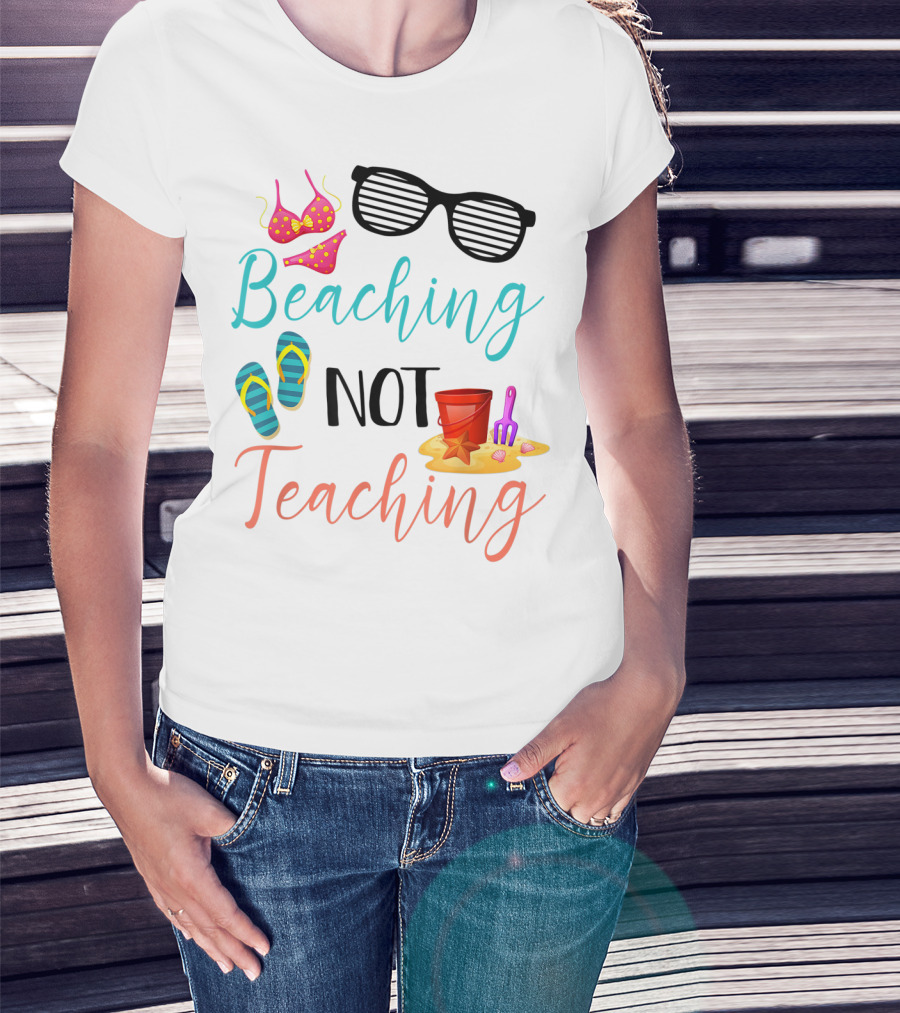 Beaching Not Teaching Funny Summer Sunglasses Bikini Flip Flops Sand Bucket T-Shirt