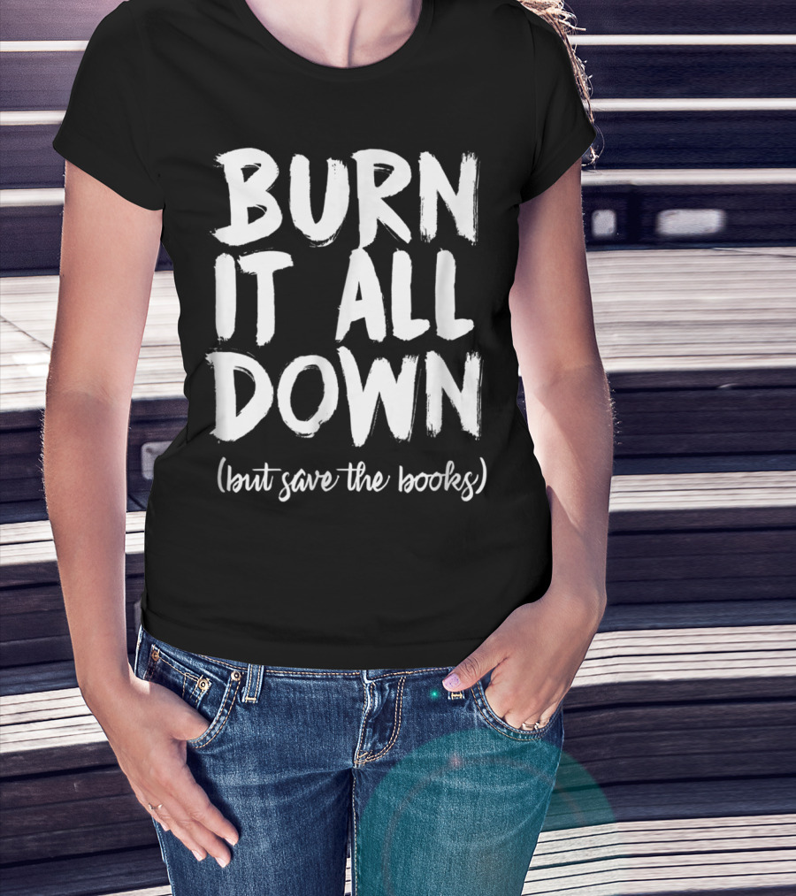 BURN IT ALL DOWN (but Save The Books) Book Writing Bookish Author T-Shirt