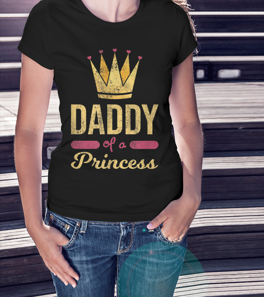 Daddy Of A Princess Funny Dad Cute Crown Hearts T-Shirt