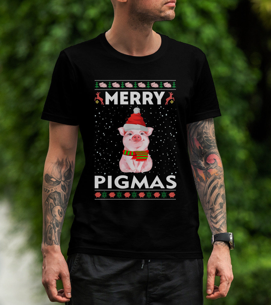 The Merry Pigmas Christmas Pig Festive Holiday Santa Hat Scarf Snowflakes Icons T-shirt is designed for everyday wear and a consistent fit. Fabric is pre-shrunk ring-spun cotton with durable stitching. See the size chart below for exact measurements.