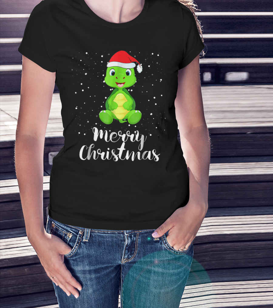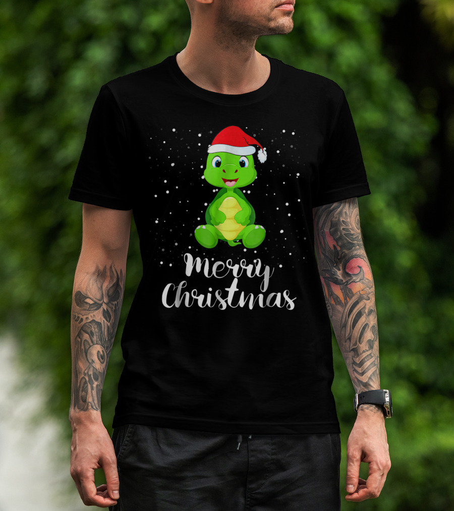 Merry Christmas Cute Turtle Santa Hat Family Group T-Shirt