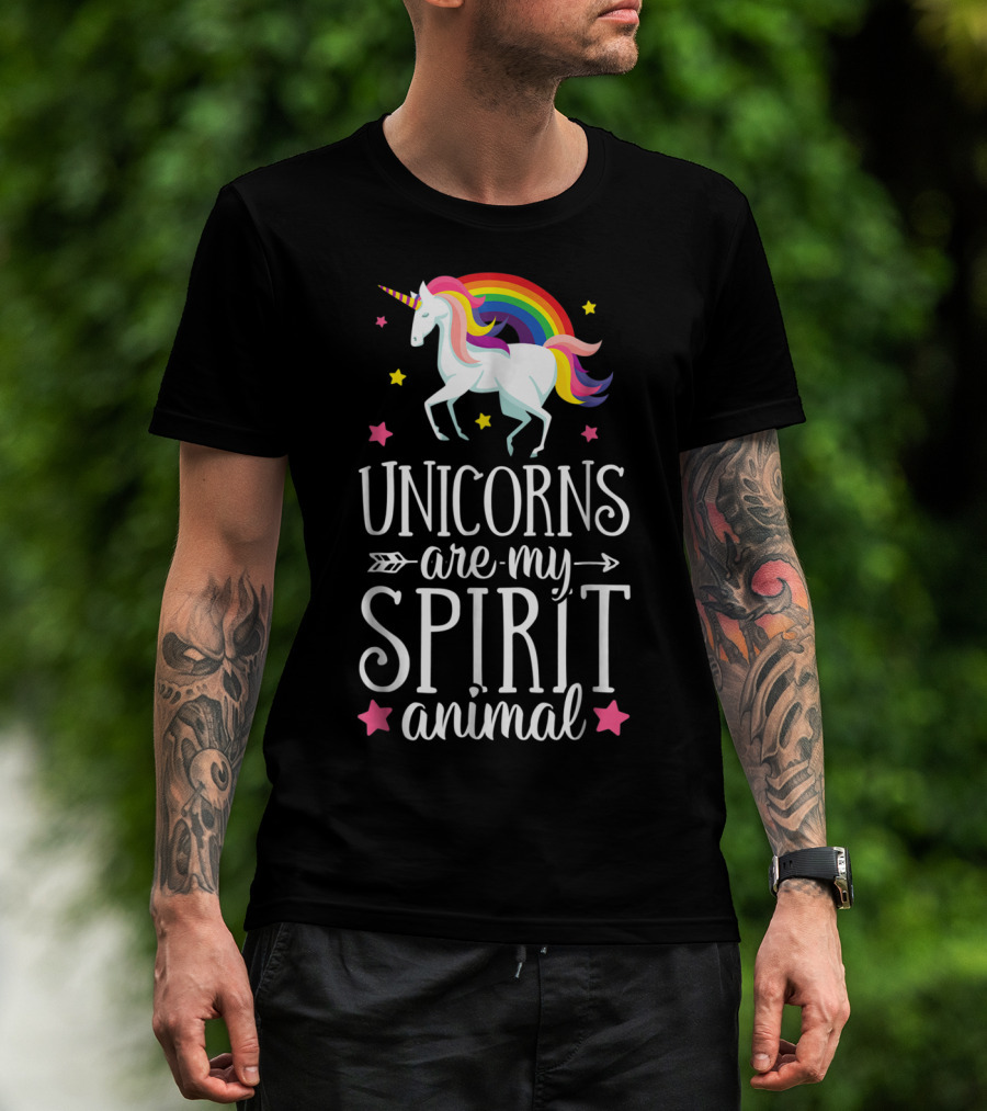 Unicorns Are My Spirit Animal Rainbow Stars Fantasy T-Shirt