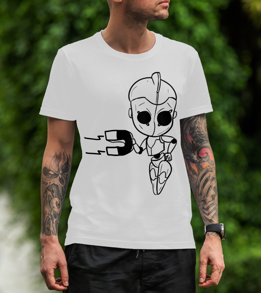 The Valentines Couples Girl Her Him Girls Magnet Robot T-shirt is designed for everyday wear and a consistent fit. Fabric is pre-shrunk ring-spun cotton with durable stitching. See the size chart below for exact measurements.