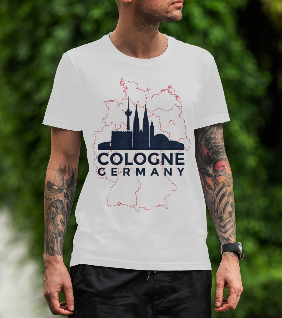 The Cologne Germany Koln Skyline and Map Souvenir T-shirt is designed for everyday wear and a consistent fit. Fabric is pre-shrunk ring-spun cotton with durable stitching. See the size chart below for exact measurements.