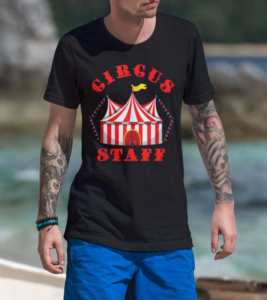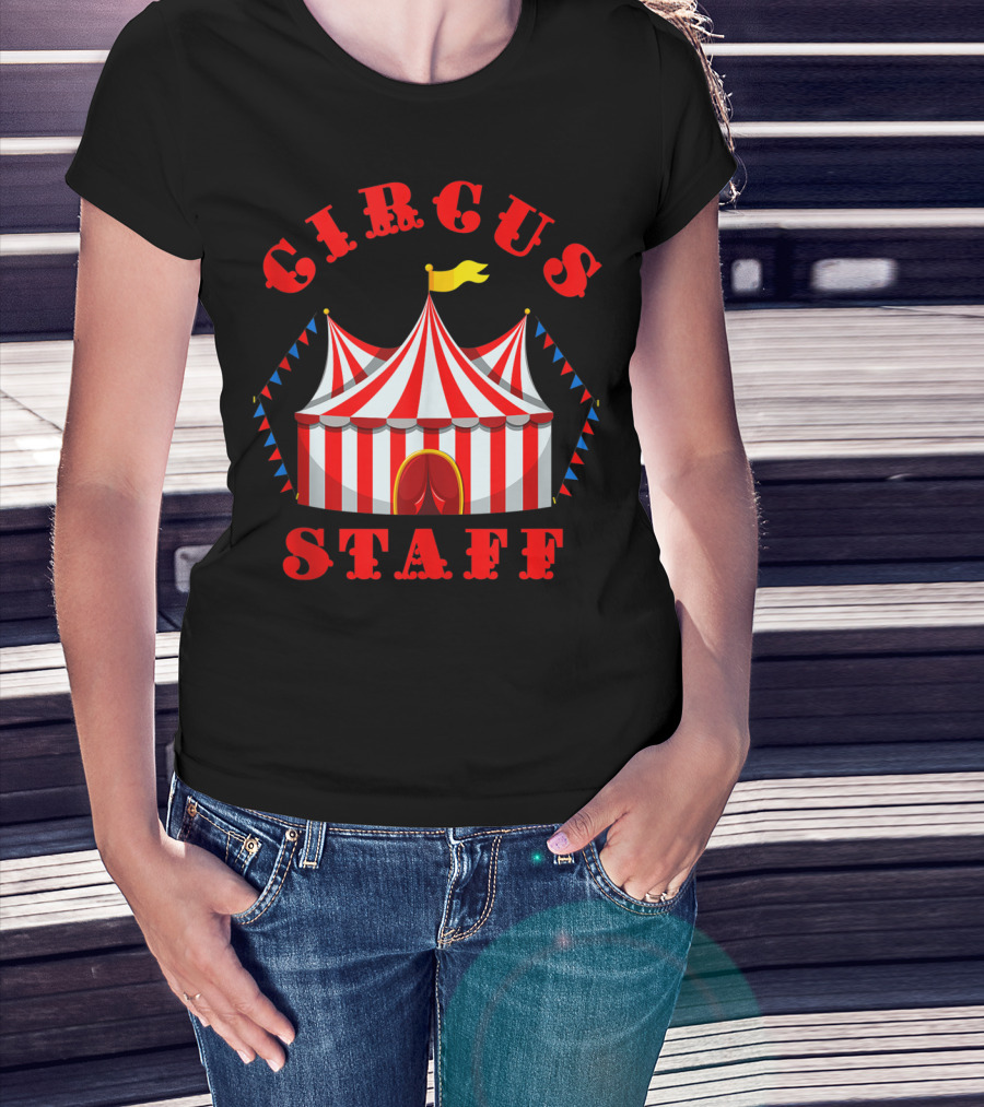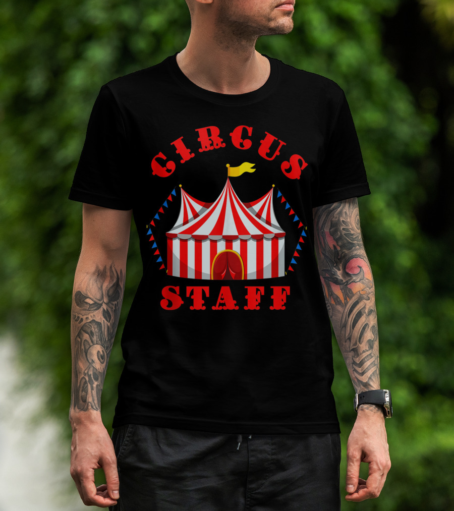 The Circus Event Staff Carnival Tent Party T-shirt is designed for everyday wear and a consistent fit. Fabric is pre-shrunk ring-spun cotton with durable stitching. See the size chart below for exact measurements.