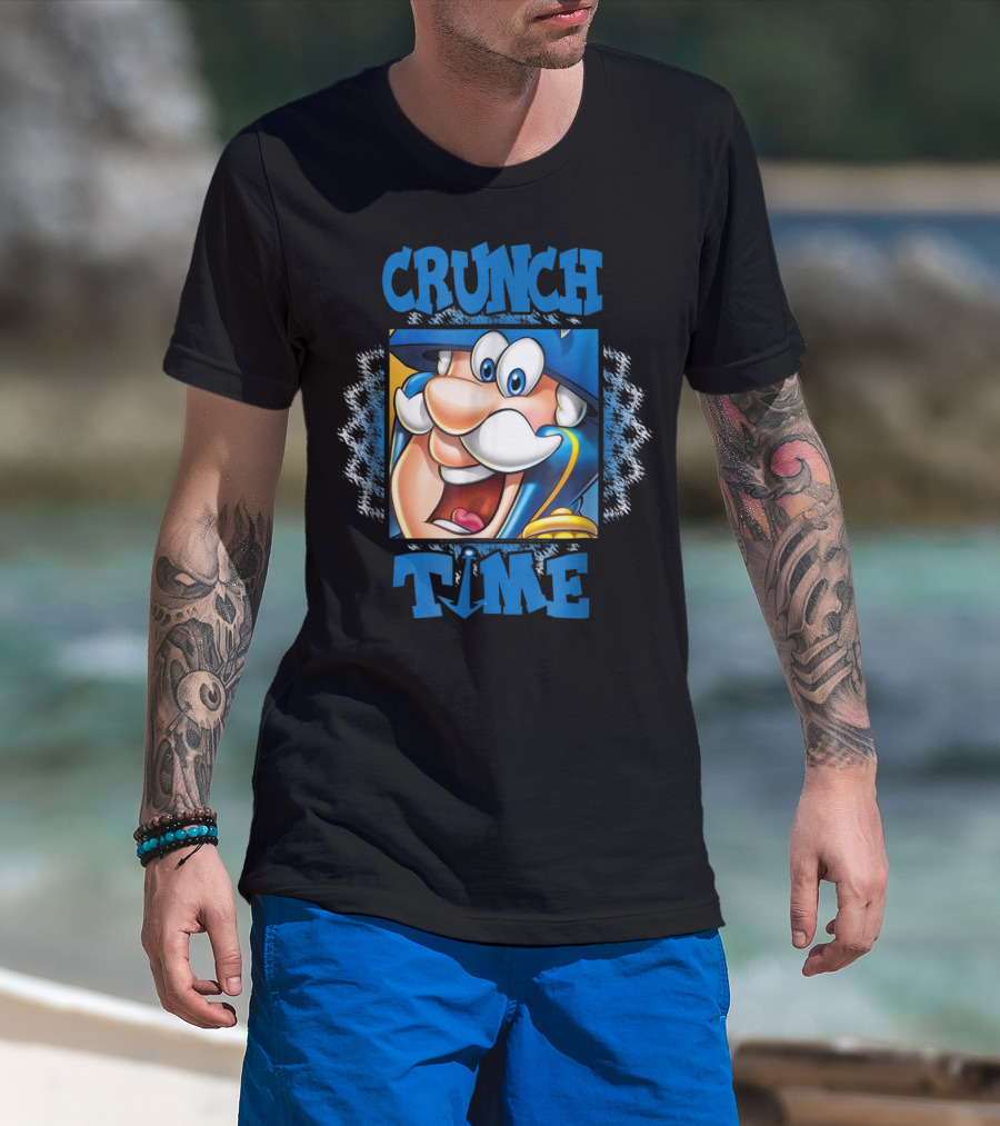 The Crunch Time Cap'n Crunch Happy Captain Face T-shirt is designed for everyday wear and a consistent fit. Fabric is pre-shrunk ring-spun cotton with durable stitching. See the size chart below for exact measurements.