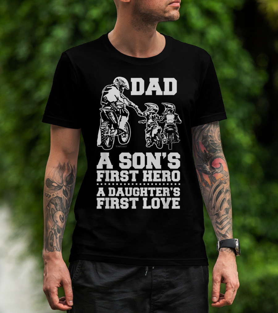Dad Son's Hero Daughter's First Love Motocross Dirt Bike Rider T-Shirt